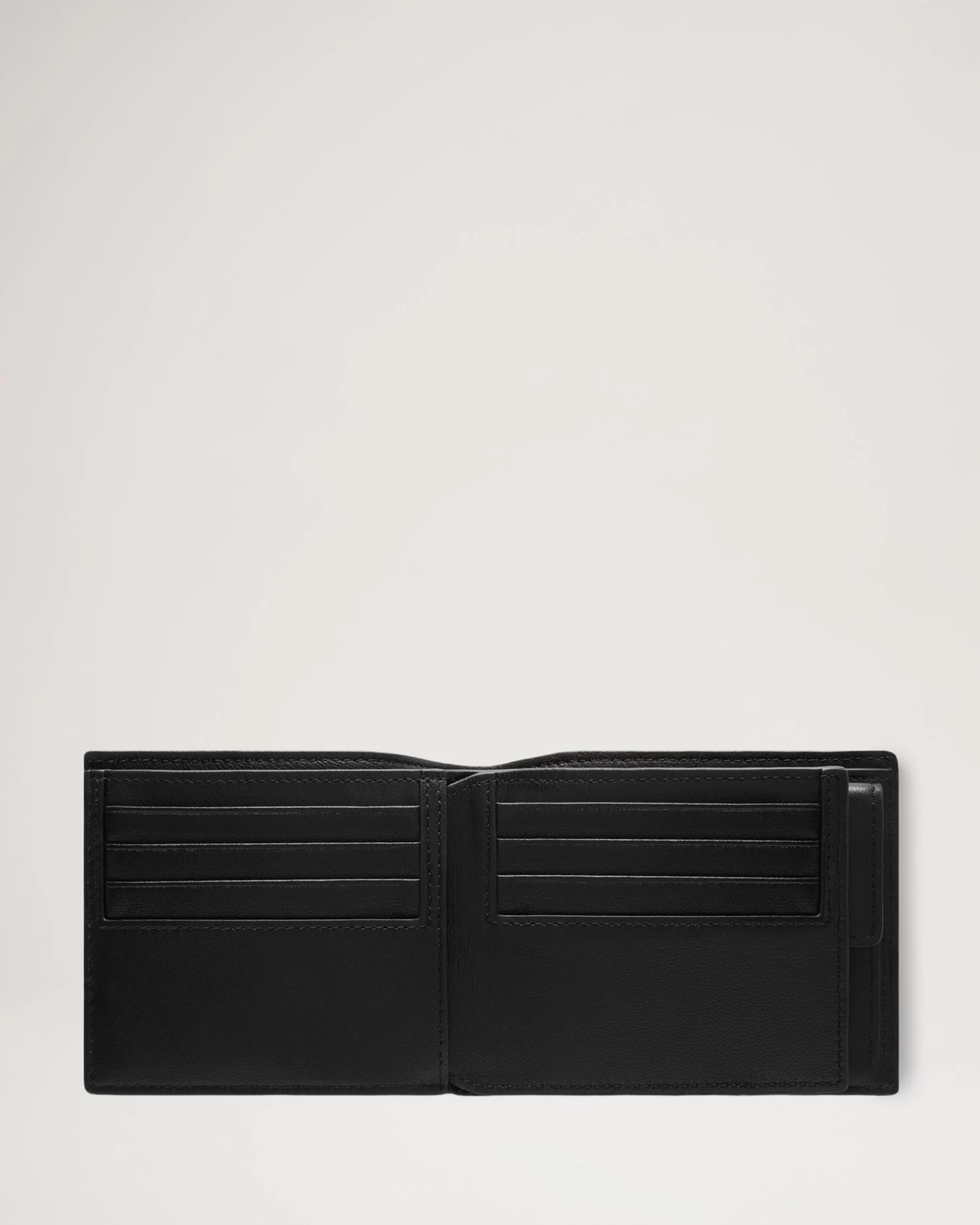 This simple wallet has credit card slots and slip pockets, as well as a main slip compartment for notes and a poppered pocket for coins.