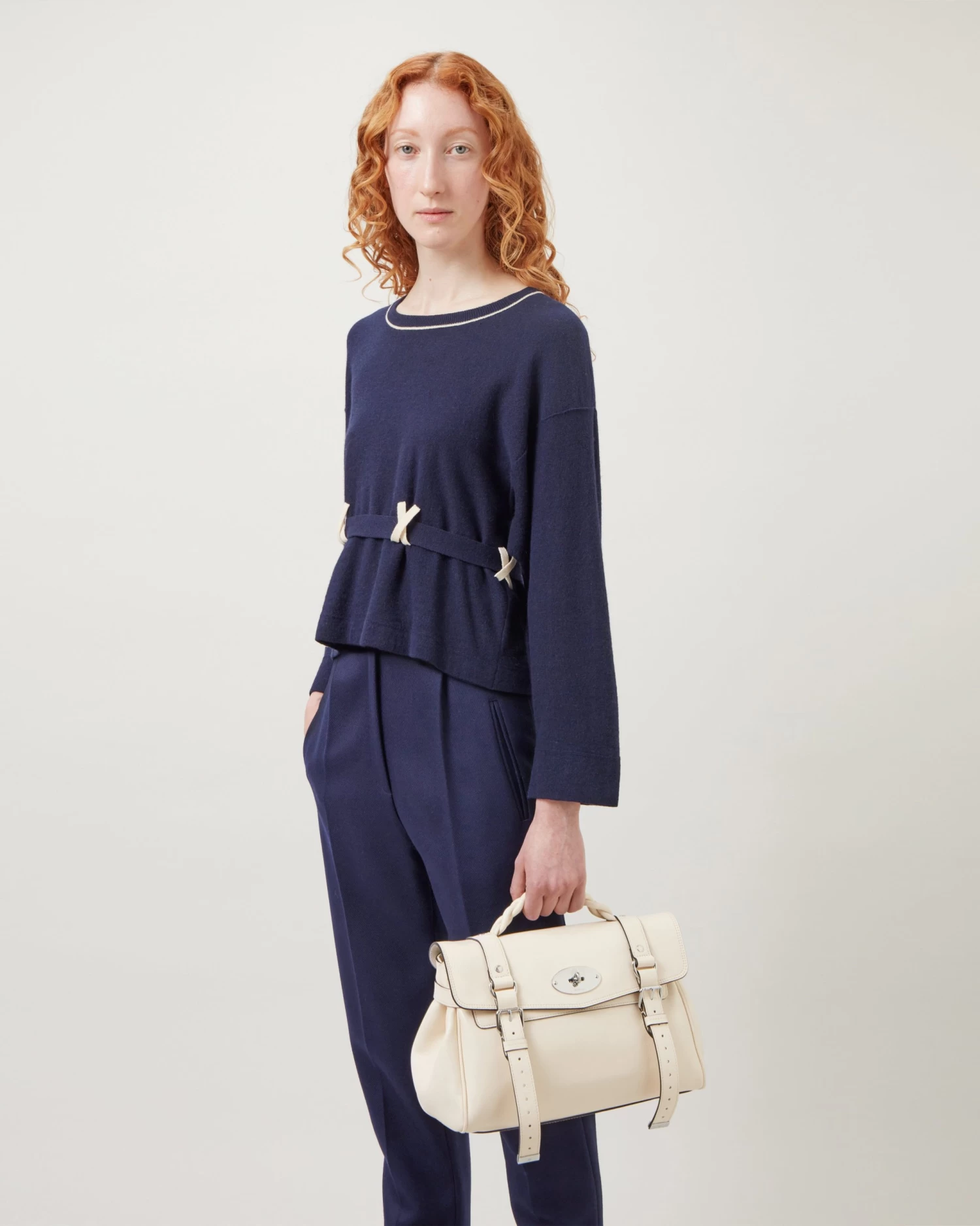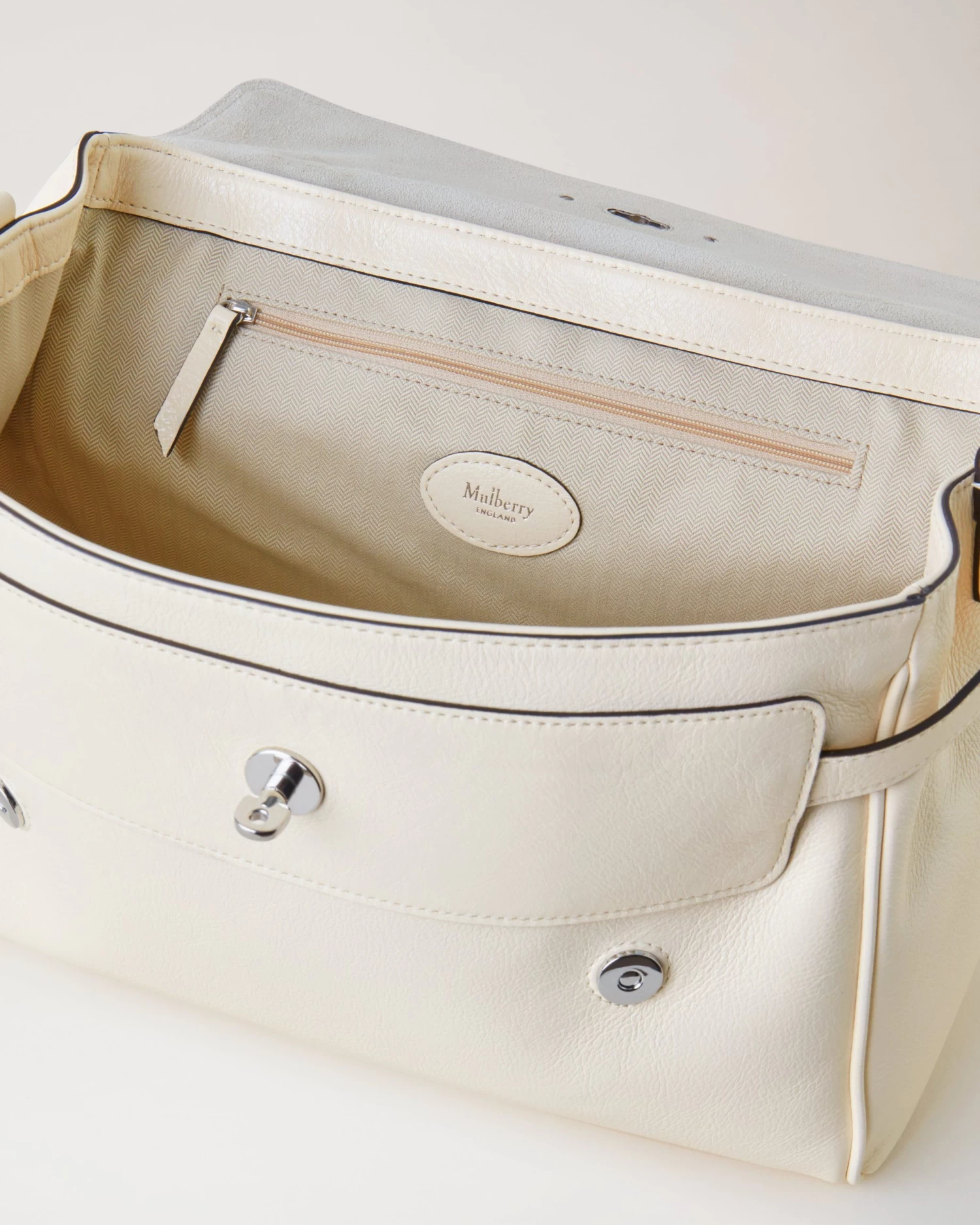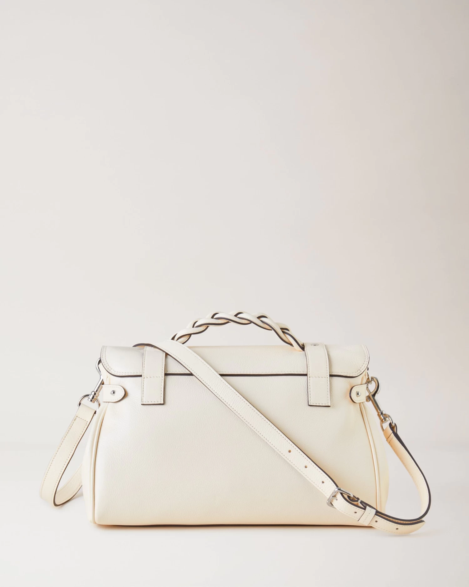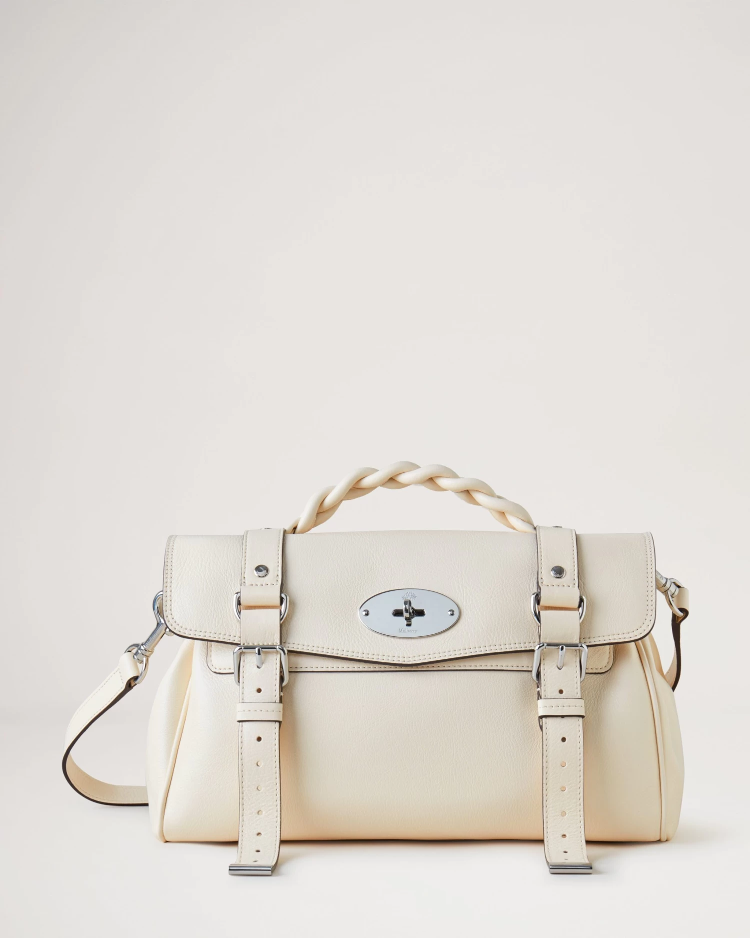 The Alexa effortlessly combines elements from two iconic Mulberry styles: the Bayswater bag and the Elkington briefcase. The result is an understatedly cool satchel complete with the signature Mulberry Postman’s Lock and belt buckle and strap hardware. Carry by the plaited leather top handle or wear with the adjustable cross body strap.
