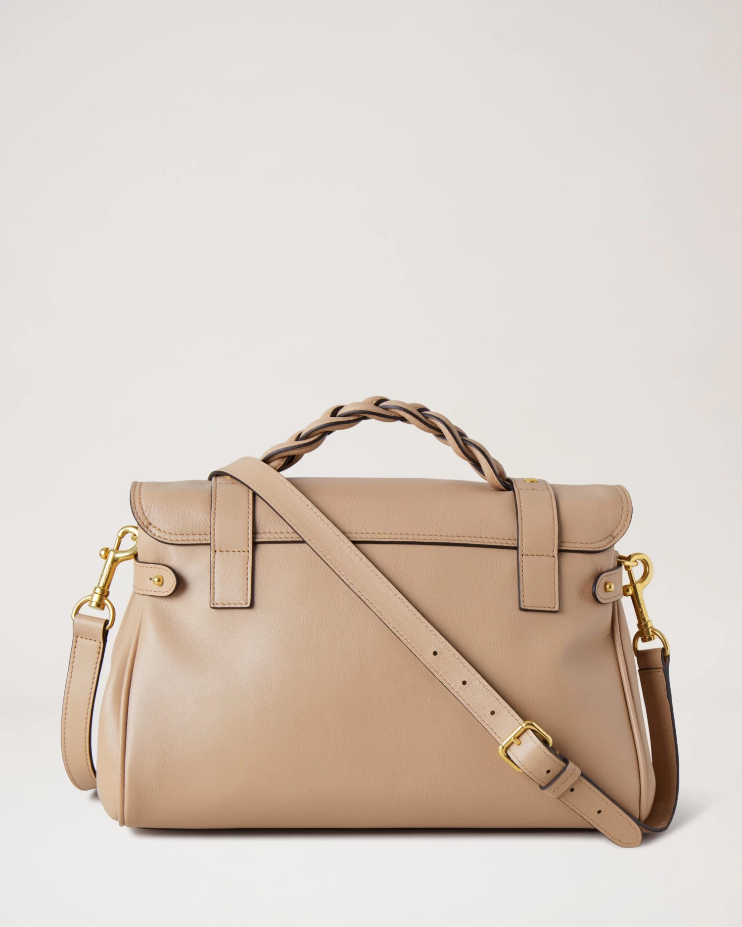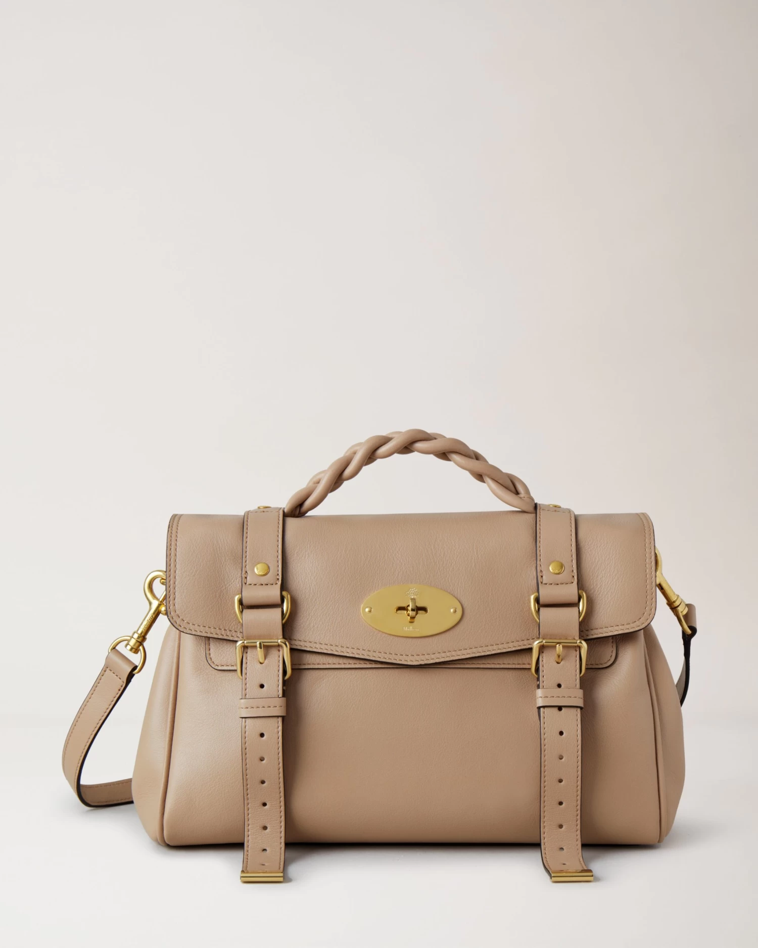 The Alexa effortlessly combines elements from two iconic Mulberry styles: the Bayswater bag and the Elkington briefcase. The result is an understatedly cool satchel complete with the signature Mulberry Postman’s Lock and belt buckle and strap hardware. Carry by the plaited leather top handle or wear with the adjustable cross body strap.