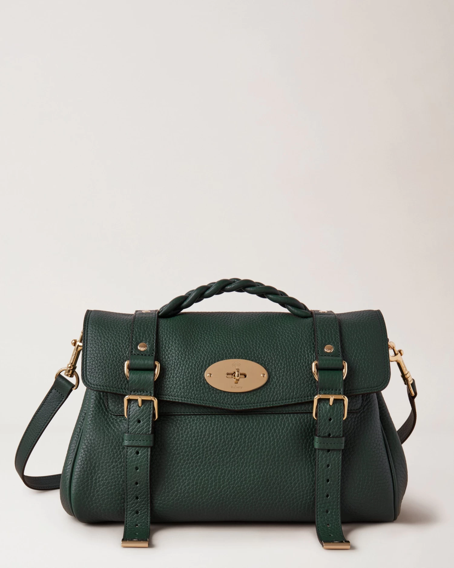 The Alexa effortlessly combines elements from two iconic Mulberry styles: the Bayswater bag and the Elkington briefcase. The result is an understatedly cool satchel complete with the signature Mulberry Postman’s Lock and belt buckle and strap hardware. Carry by the plaited leather top handle or wear with the adjustable cross body strap.
