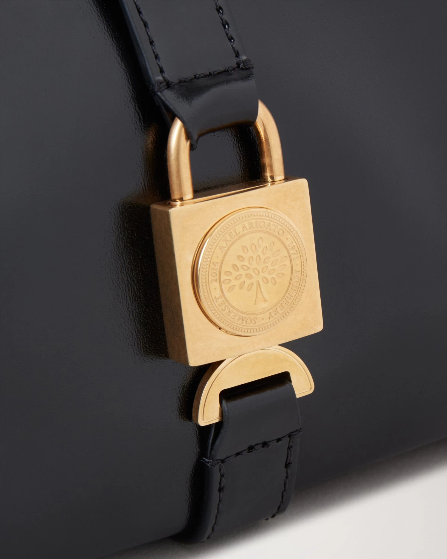 Inspired by the silhouette of the archive Mulberry Maddison, the Top Handle Bag features a brass lock-and-key buckle adorned with the Axel Arigato for Mulberry logo. Made from environmentally-accredited 100% bovine leather, the Top Handle comes in two colourways: White and Black, and a stylish all Black.
