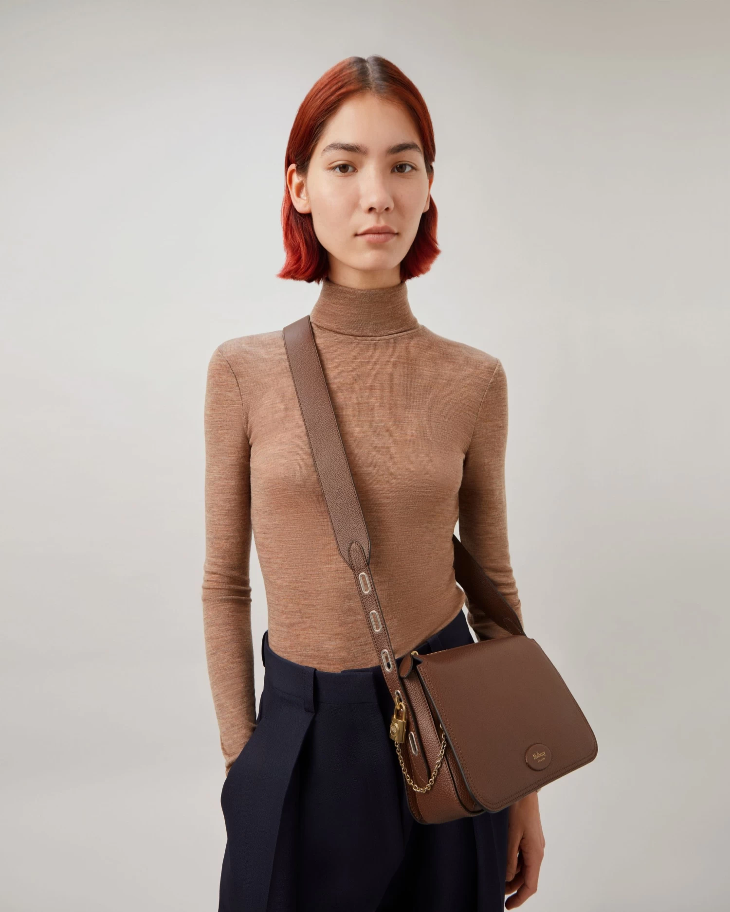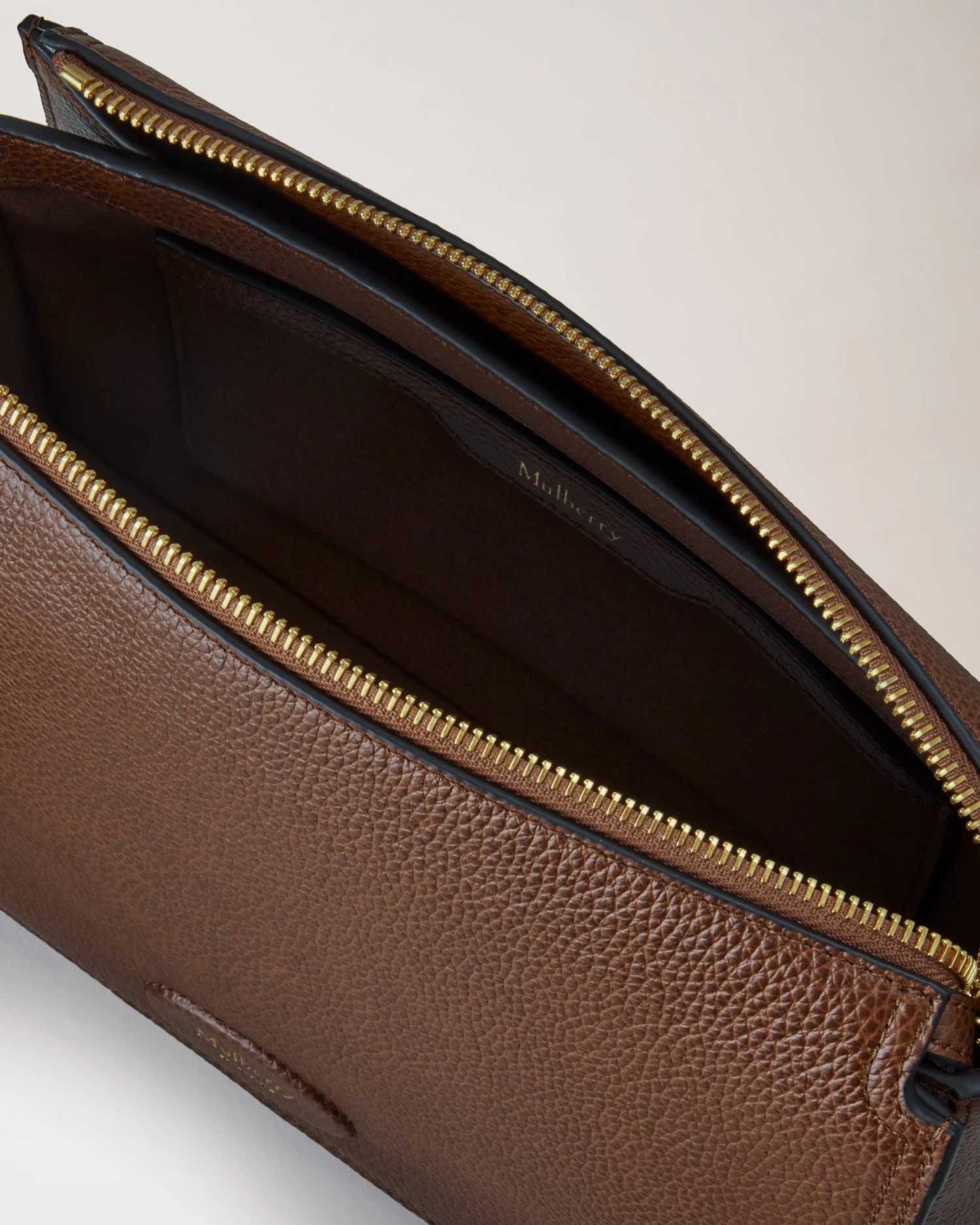 - Leather patch with foil embossed Mulberry signature