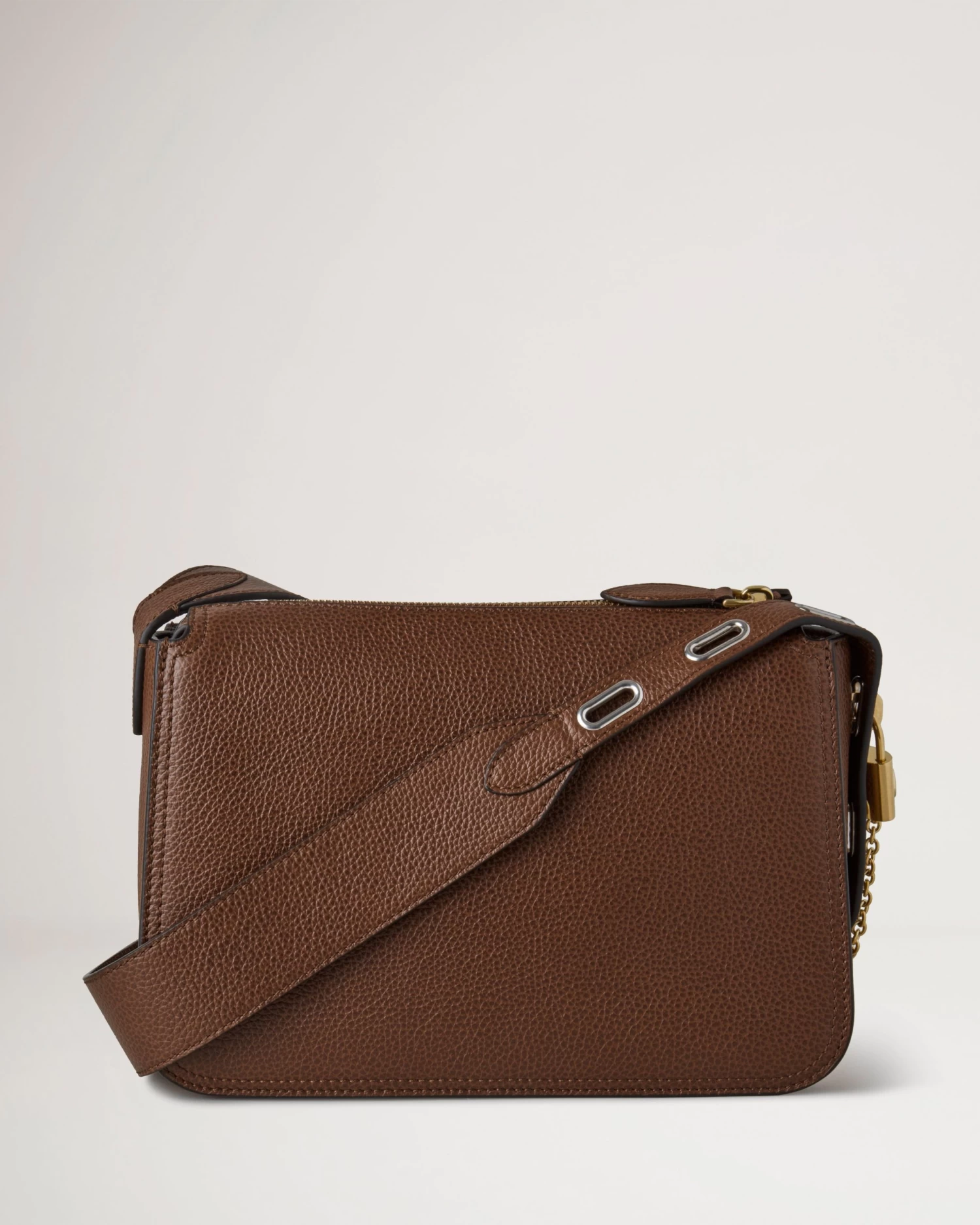 A zipped crossbody bag.