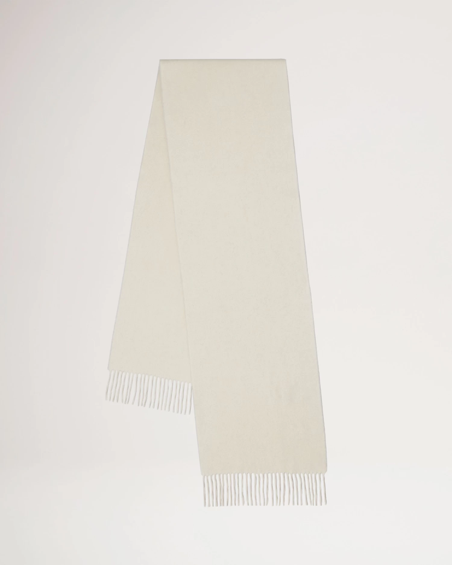 Woven in a Scottish mill, this classic cashmere scarf will keep out the chill on cool days and colder evenings, trimmed with soft fringing and finished with subtle logo branding.
