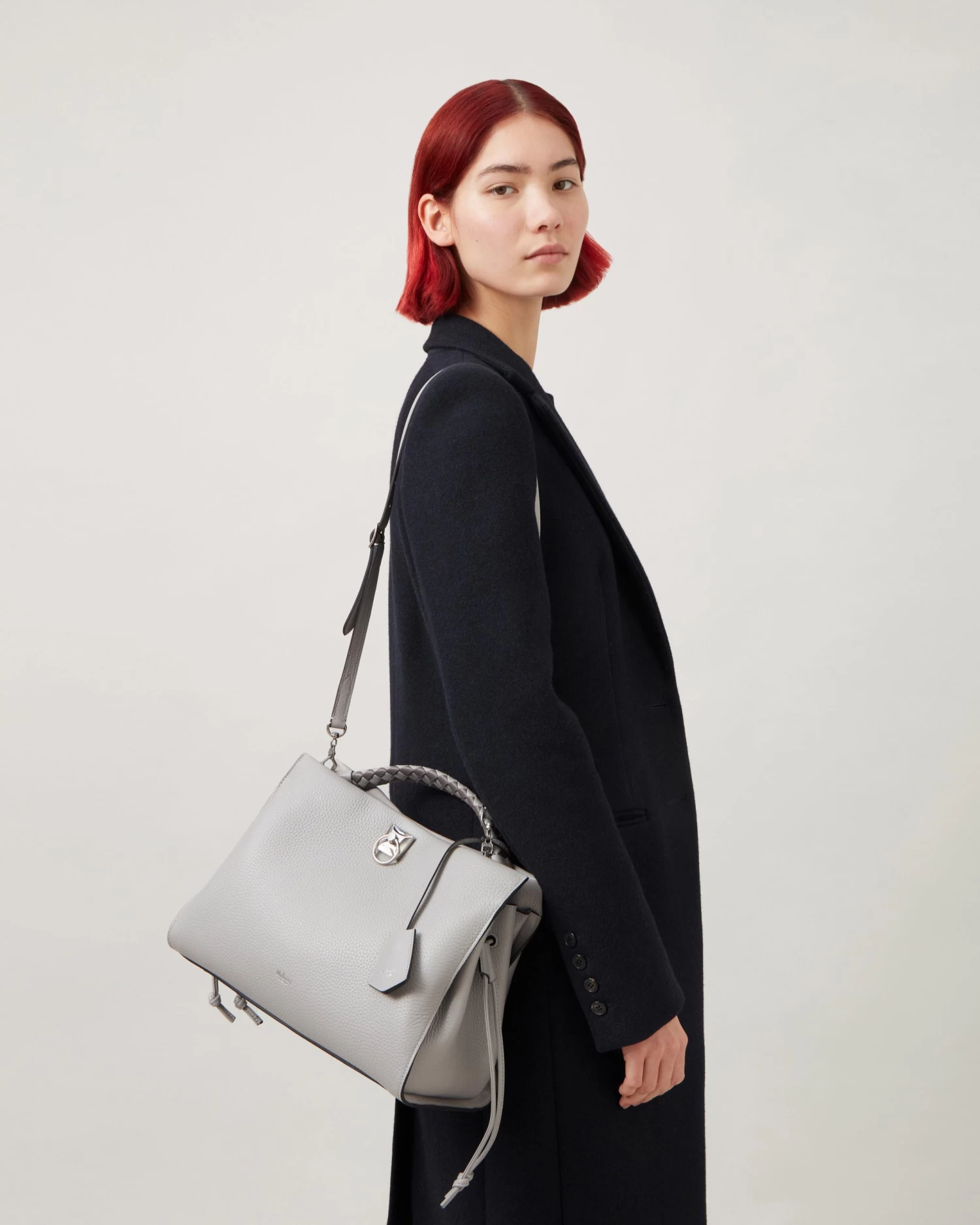The Iris presents a modern, soft structure and a natural versatility. Double pull cords to either side enhance the bag’s tactility and allow for a personalised shape. Its ladylike silhouette is enhanced with the choice of a braided top handle or a long shoulder strap, while the Keystone Lock reflects a rich history of British craftsmanship.
