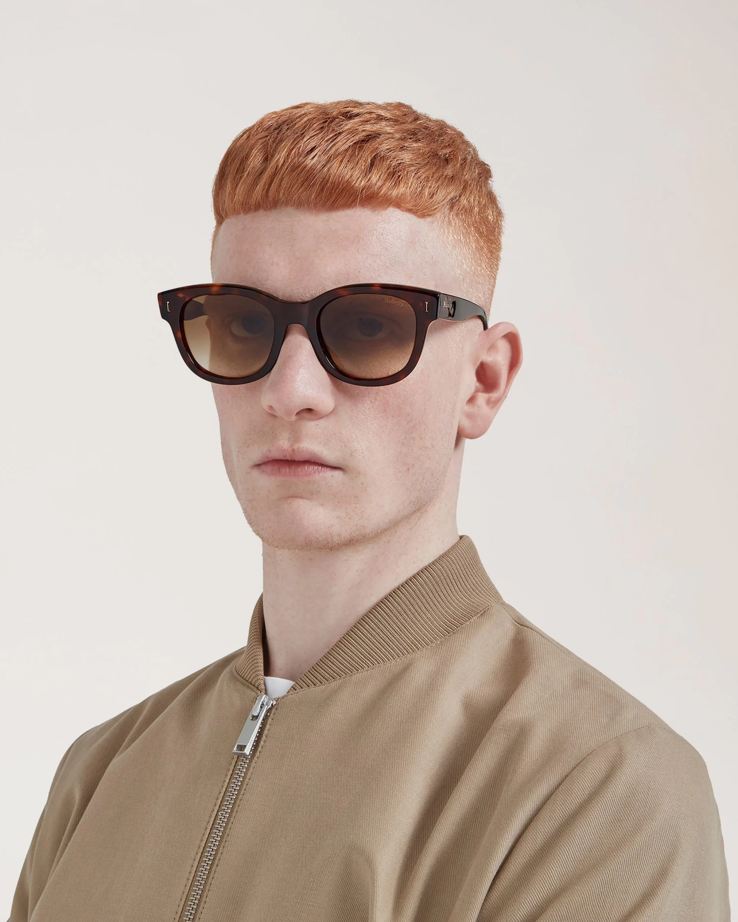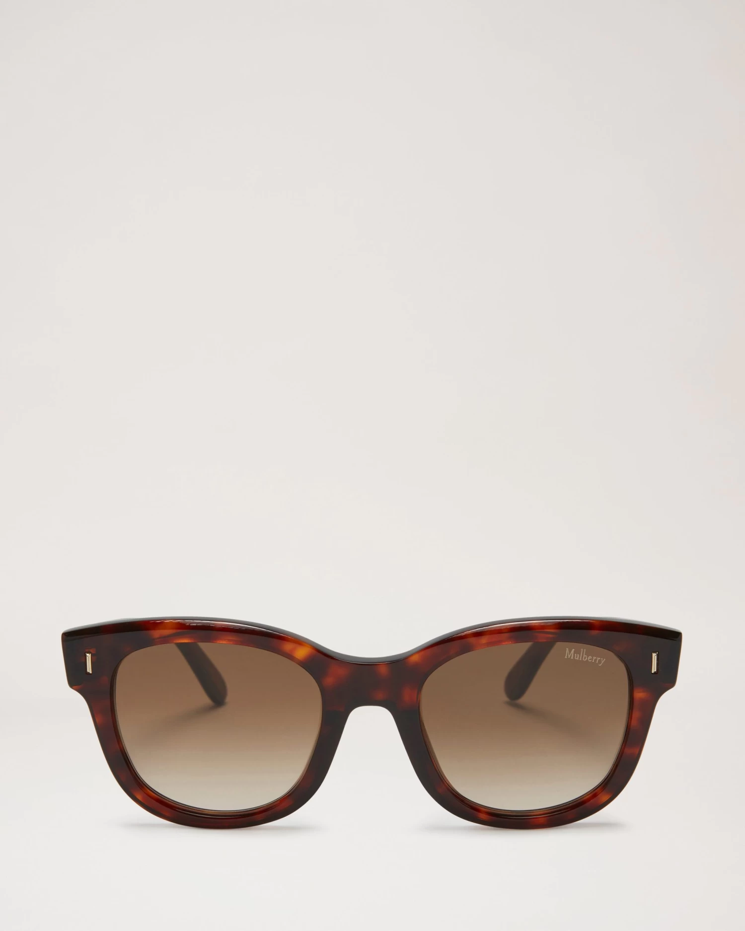 Part of our first range of eyewear inspired by British style icons, the Jane Sunglasses have a ”D” shaped frame crafted from fine acetate. The black lenses are 100% UV protected, and the glasses are finished with a Mulberry logo on the sides.