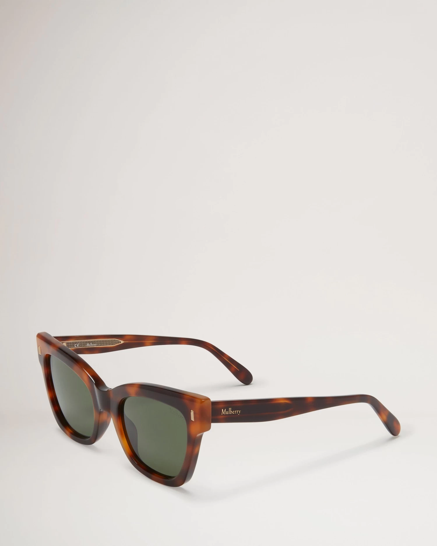 Part of our first range of eyewear inspired by British style icons, the Kate Sunglasses have a distinctly retro cat-eye frame crafted from fine acetate. The tinted lenses are 100% UV protected, and the glasses are finished with a Mulberry logo on the sides.