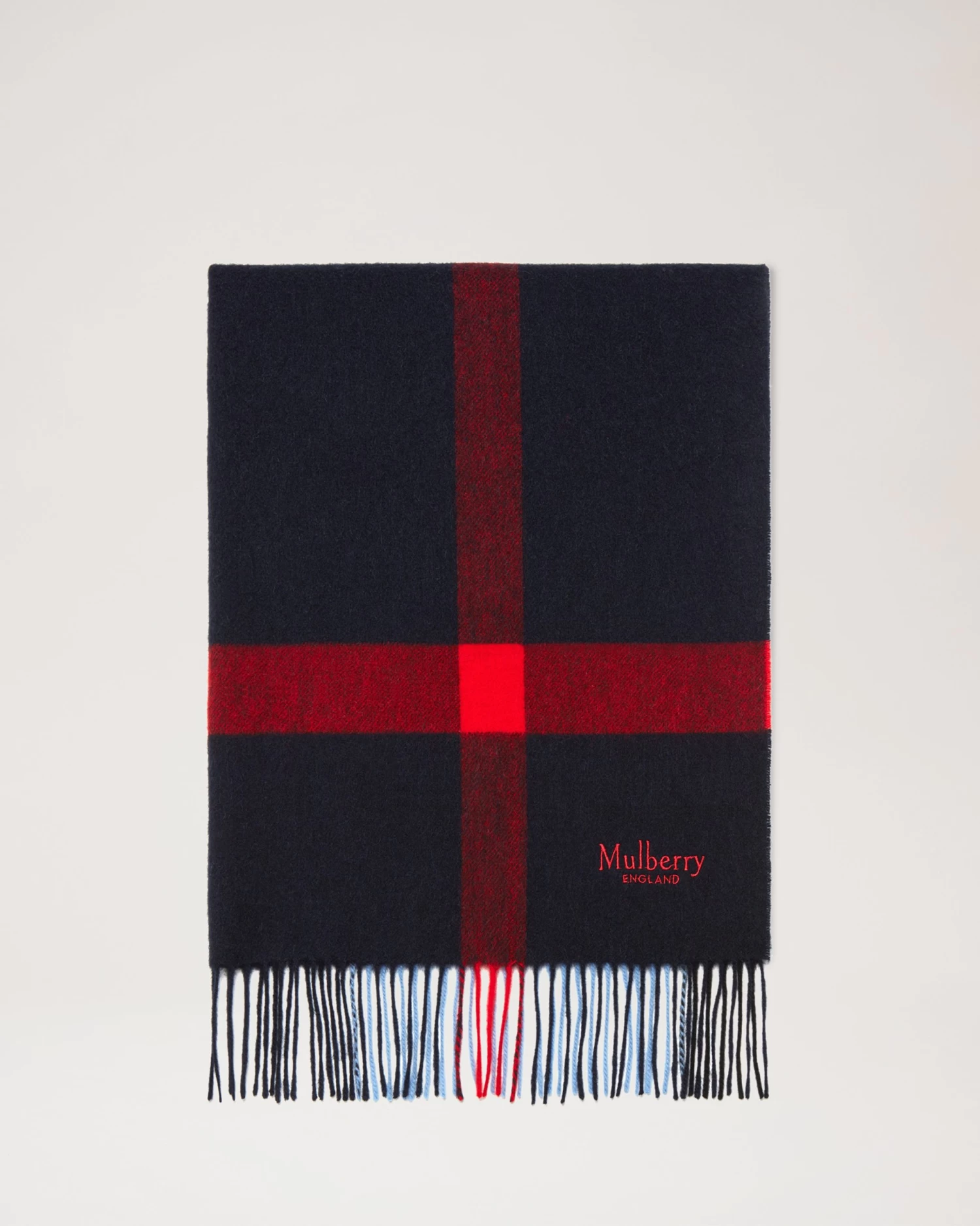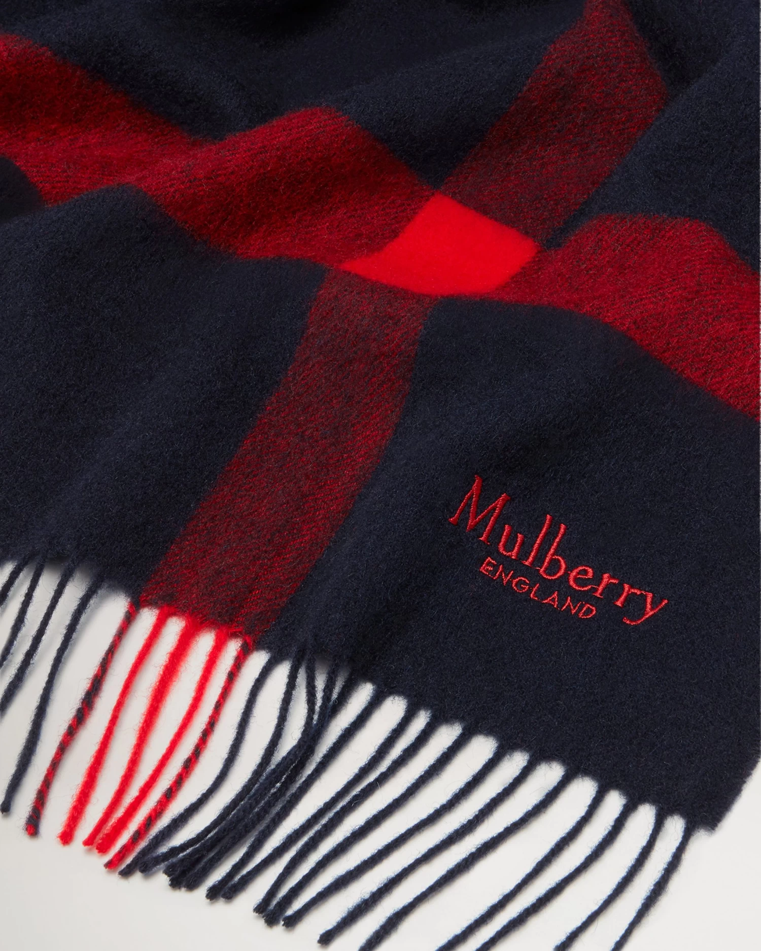 Throw this beautifully soft Lambswool scarf on when the days get chillier or the nights draw in. The pattern is inspired by the traditional Mulberry check and complements the colours and textures.