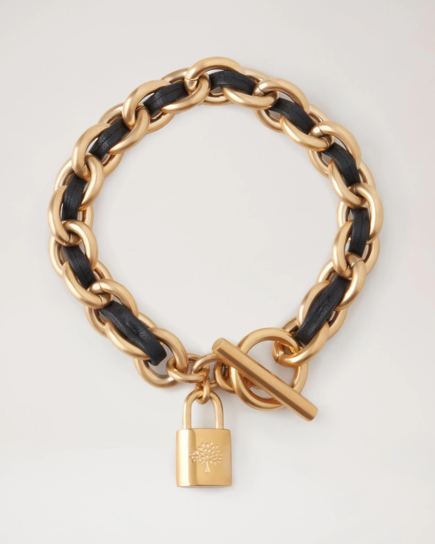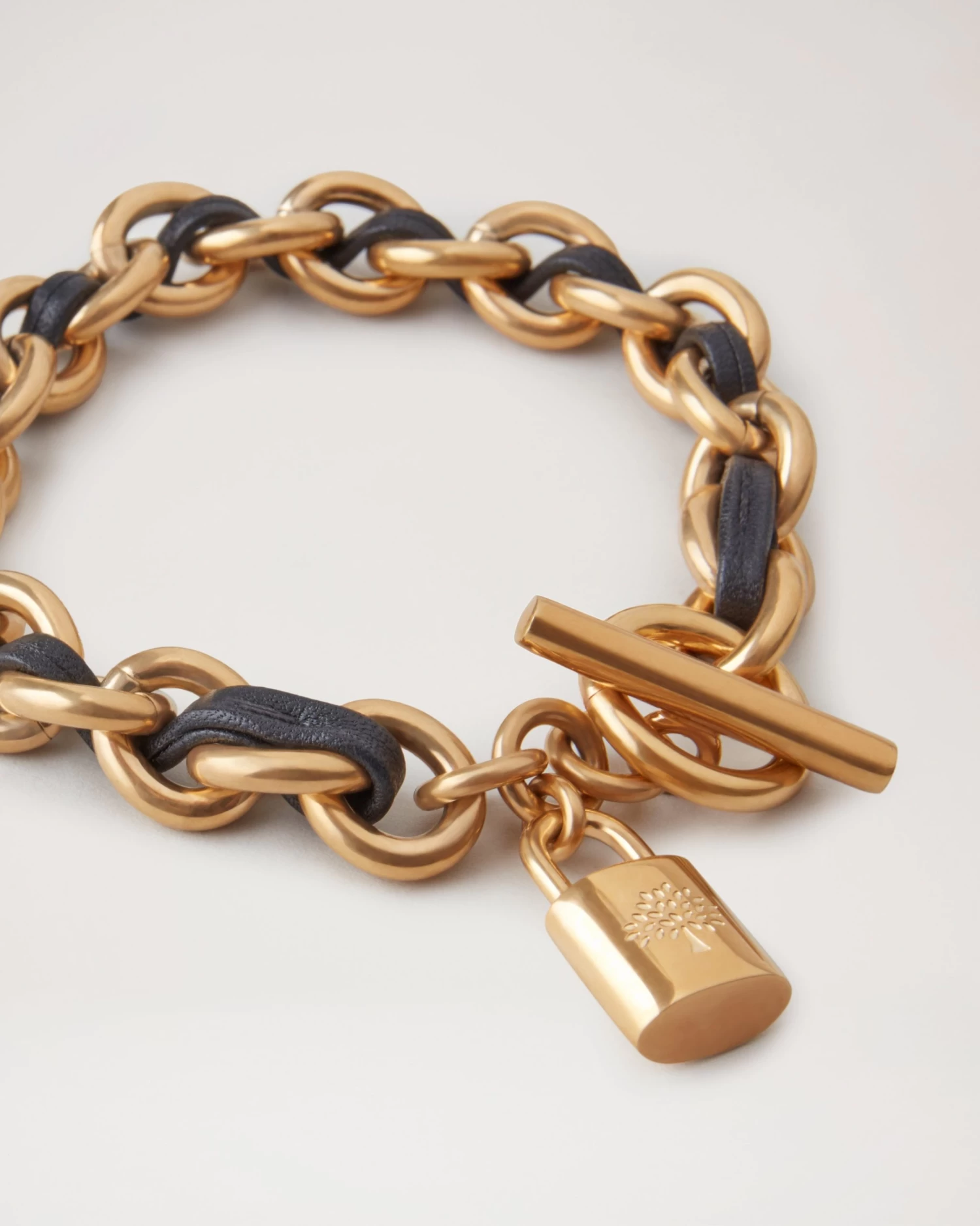 Inspired by the woven leather and chain strap of our iconic Lily evening bag, this statement bracelet also showcases our iconic Postman’s Lock hardware.