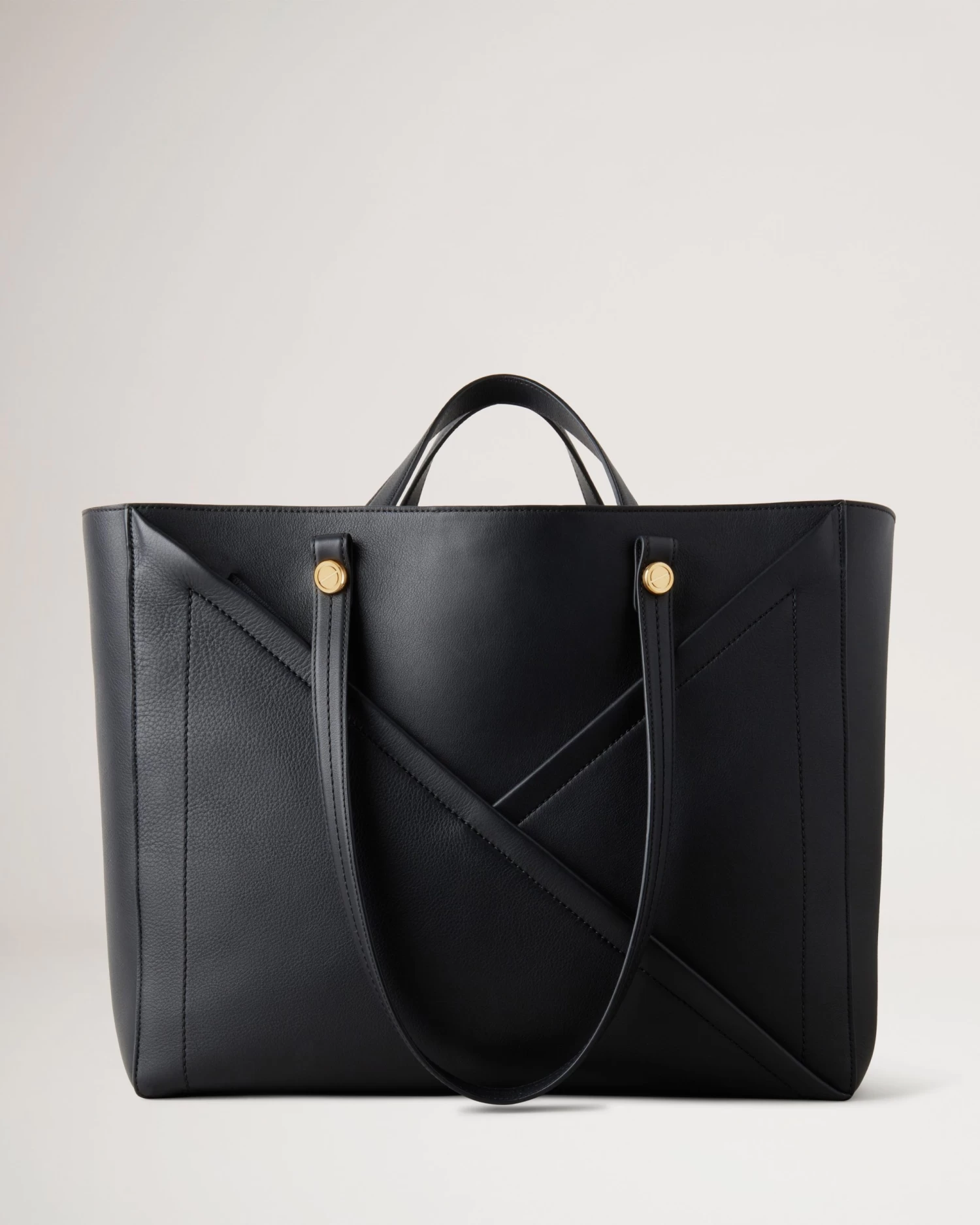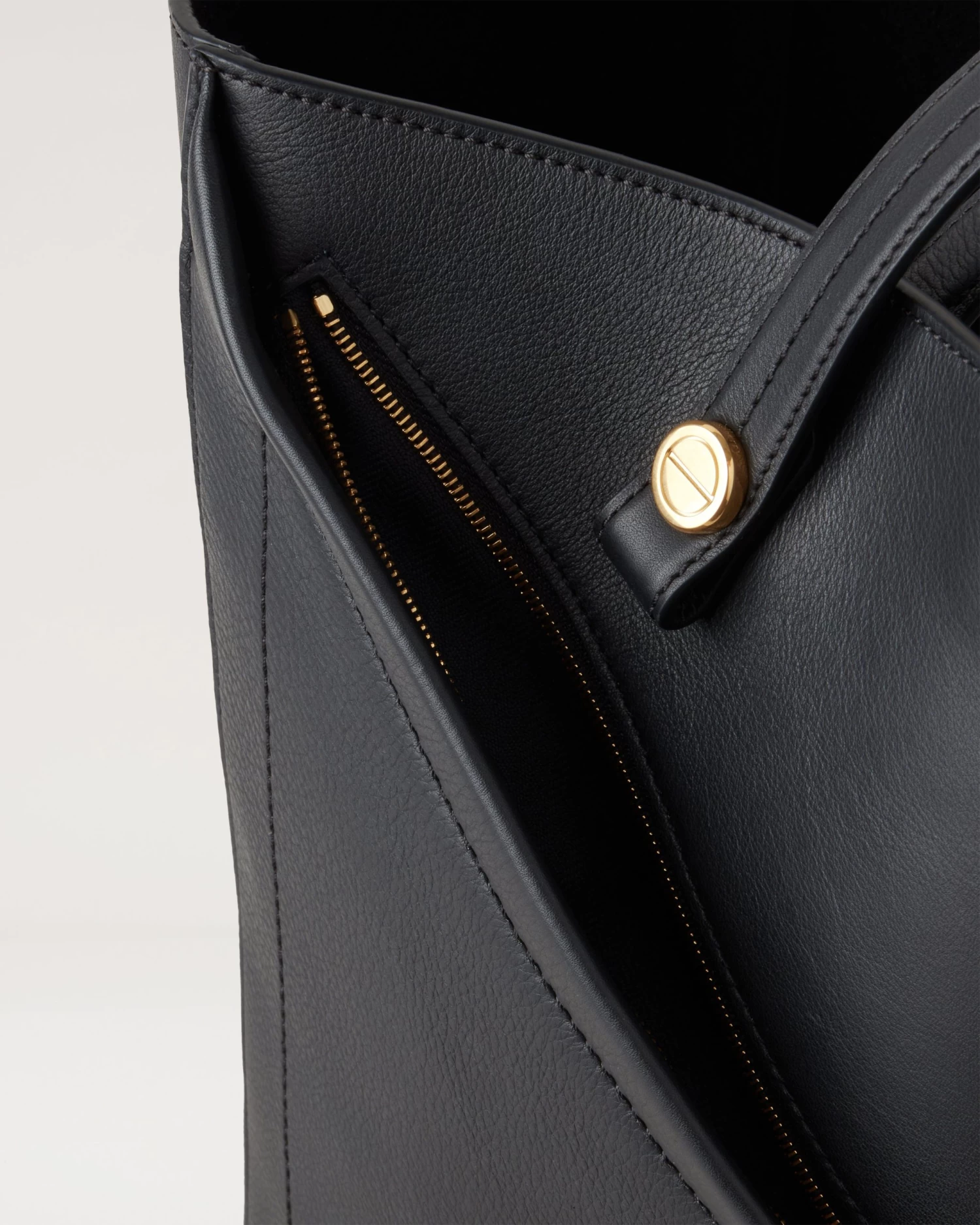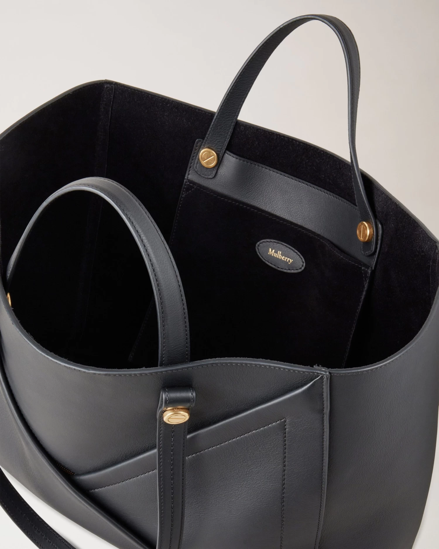 The modern Mulberry M Zipped gets a tote update. Made from a luxurious bovine leather and featuring a suede lining, this bag has the classic M Zipped envelope silhouette, but with a deep main compartment.