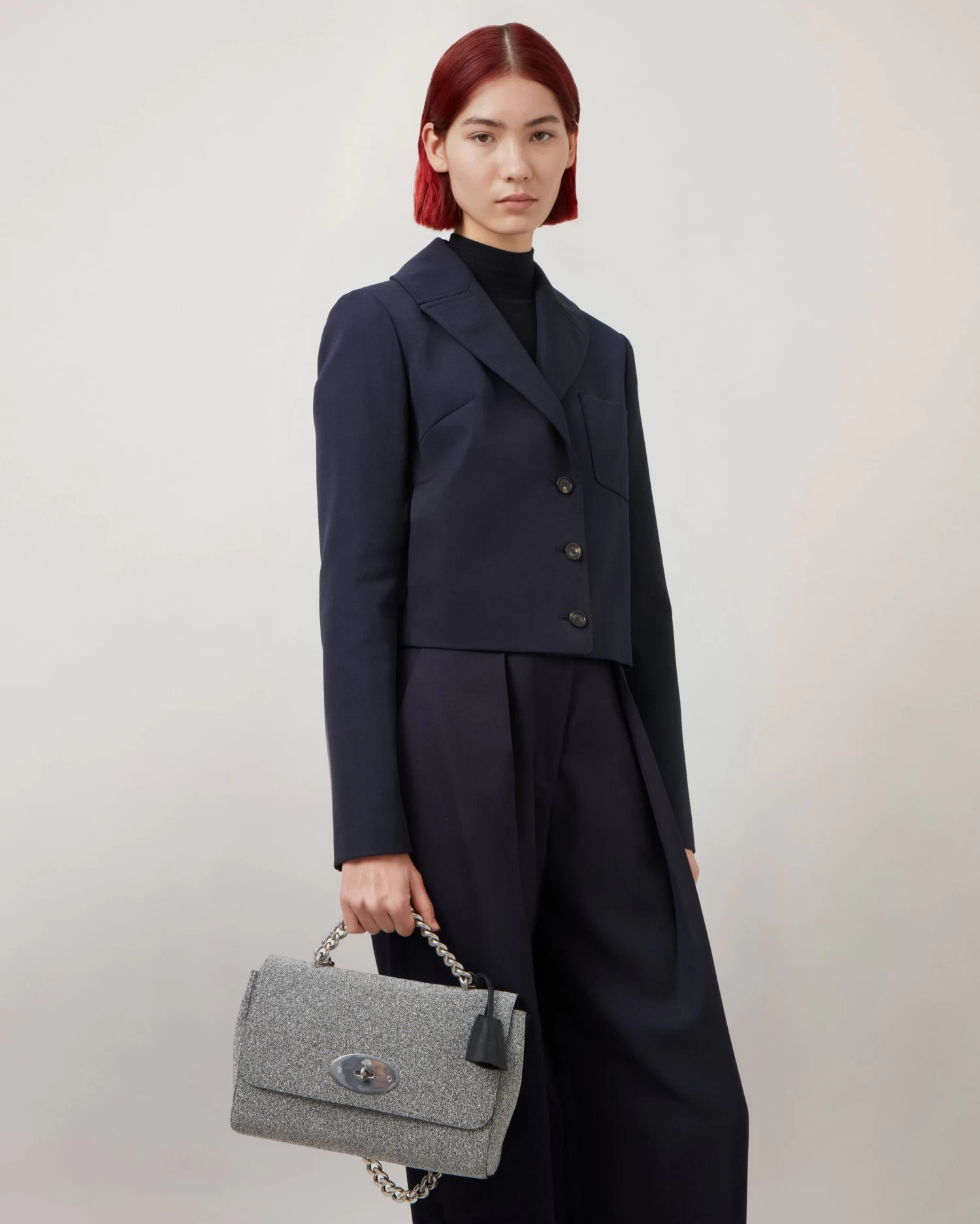The Medium Top Handle Lily offers a larger version of the effortlessly elegant Lily bag. It has a long chain strap and a shorter chain top handle. It is finished with signature Mulberry details such as the Postman’s Lock and leather padlock fob.