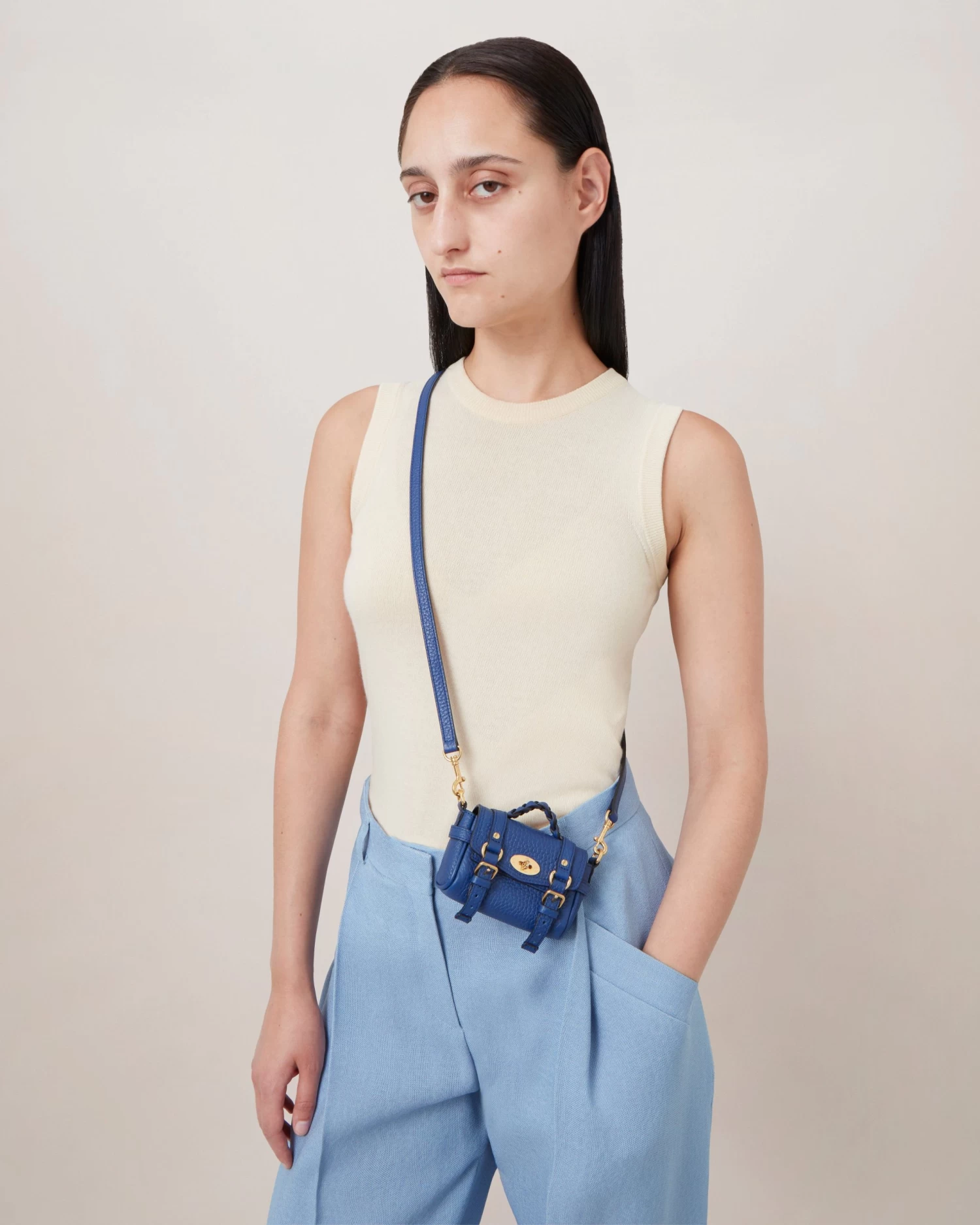 This micro version of the iconic evergreen Alexa style combines elements from two iconic Mulberry styles: the Bayswater bag and the Elkington briefcase. The result is a miniature version of an understatedly cool satchel complete with the signature Mulberry postman’s lock.
