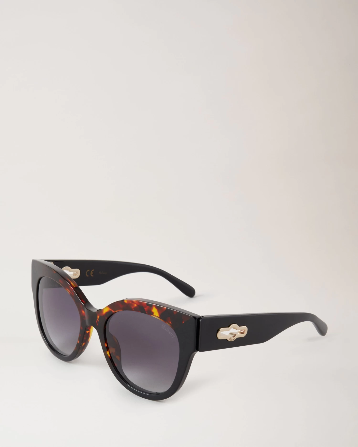 Mila Sunglasses have a round shape that is an exaggerated interpretation of the flattering cat-eye silhouette. The playful frames features a bio-colour acetate design and has the riders lock in gold on both arms.