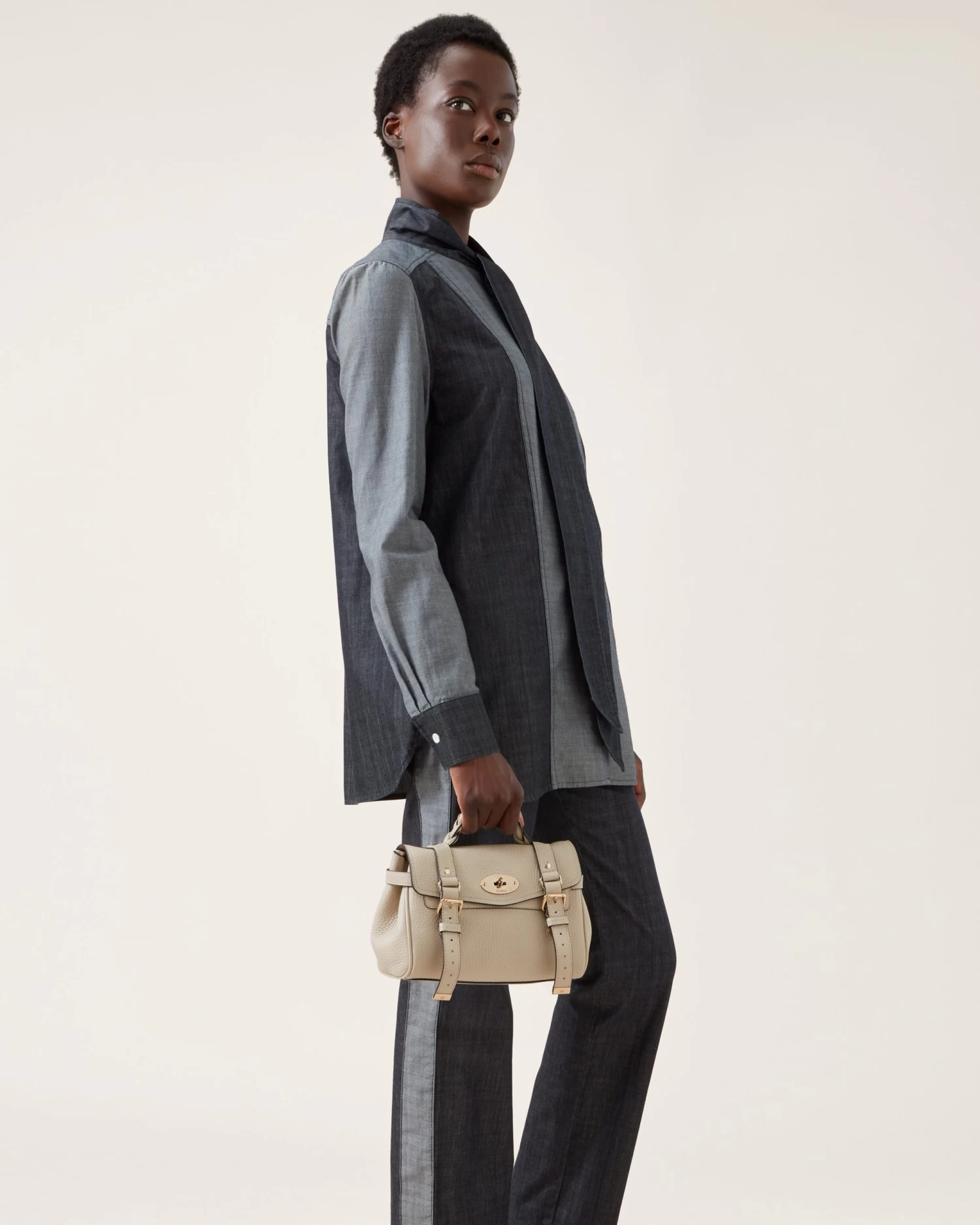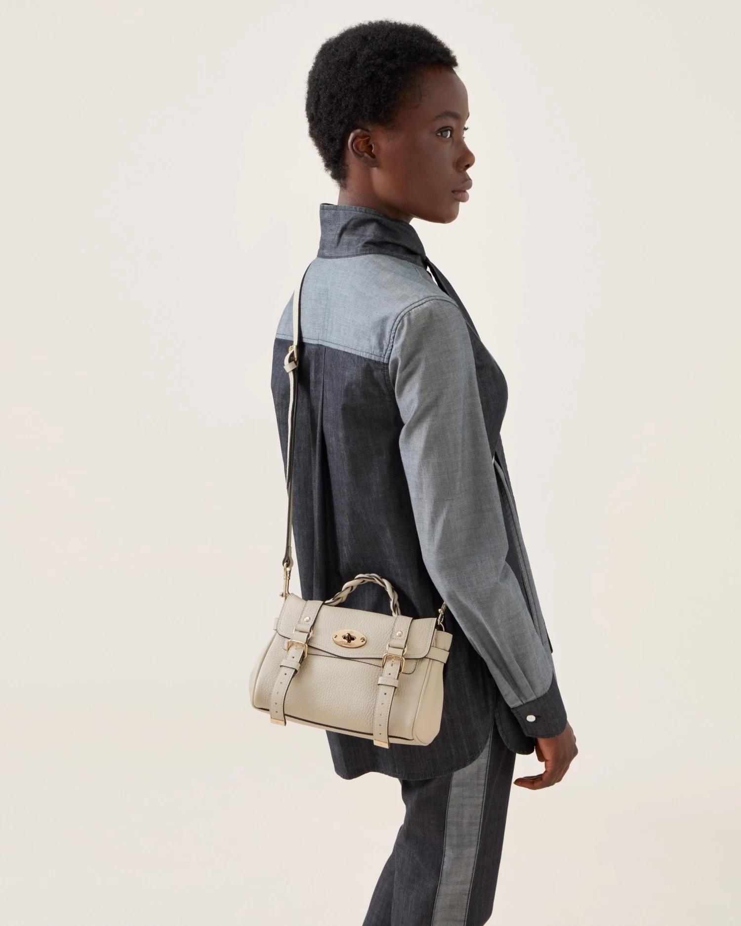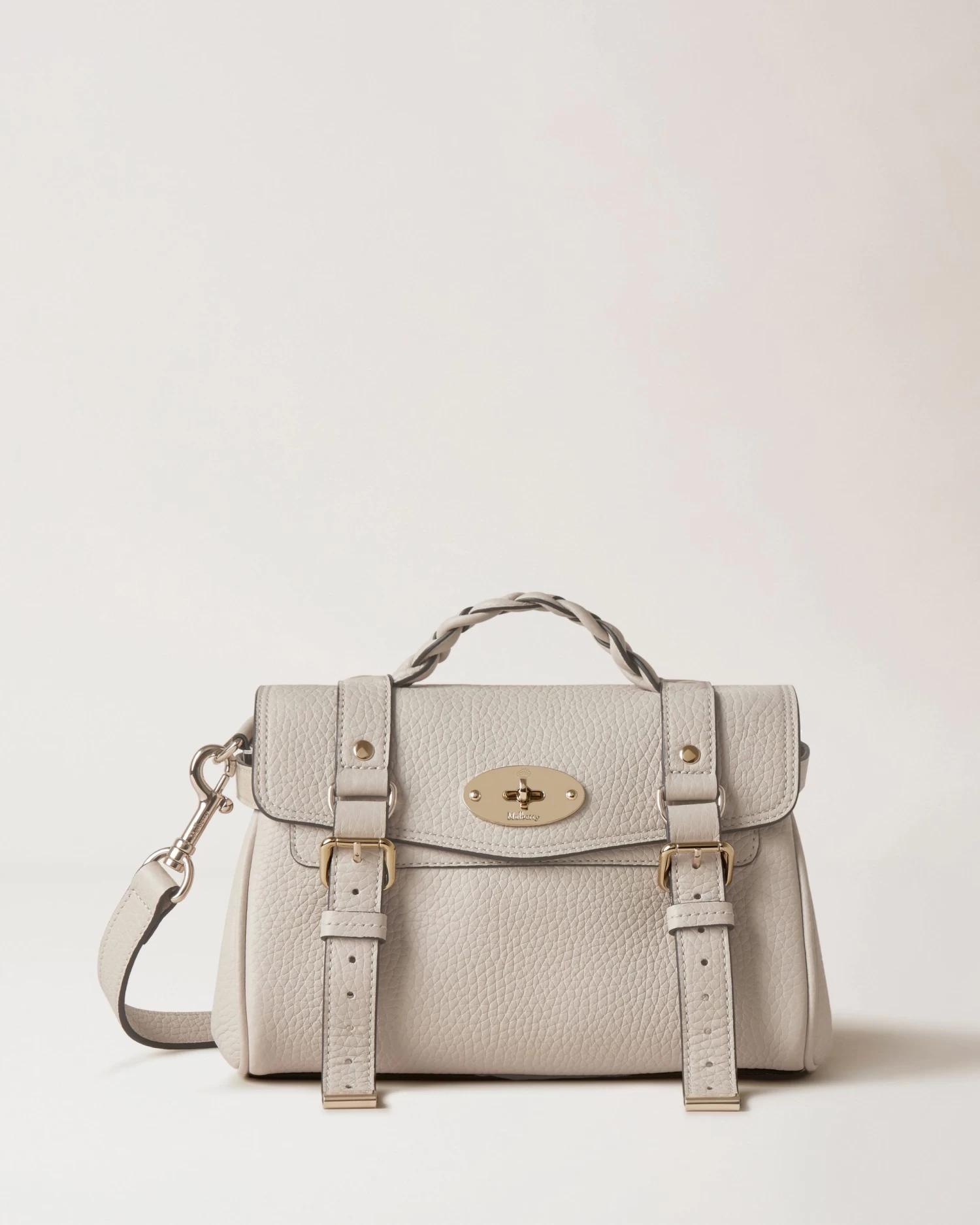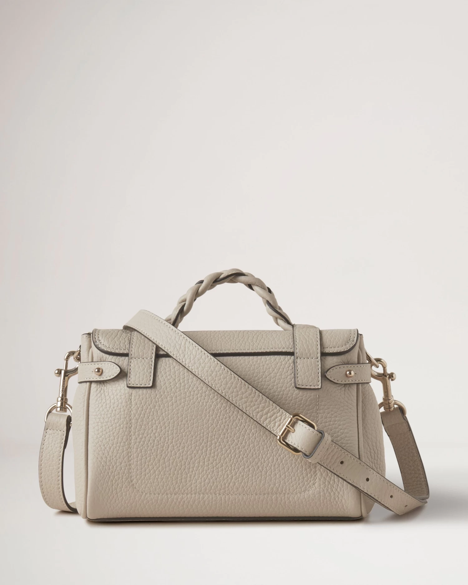 The Mini Alexa effortlessly combines elements from two iconic Mulberry styles: the Bayswater bag and the Elkington briefcase. The result is a miniature version of an understatedly cool satchel complete with the signature Mulberry Postman’s Lock and belt buckle and strap hardware. Carry by the plaited leather top handle or wear with the adjustable cross body strap.