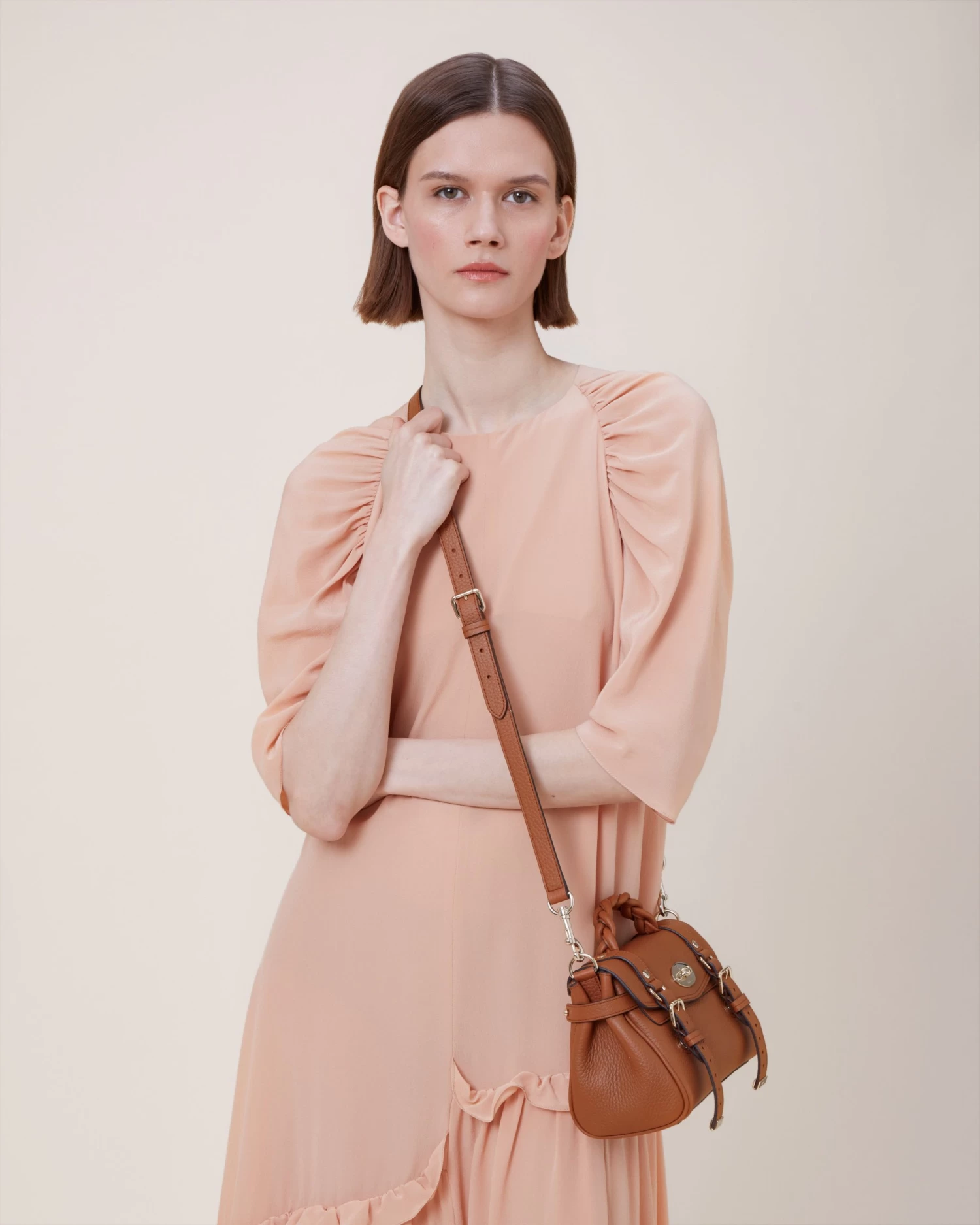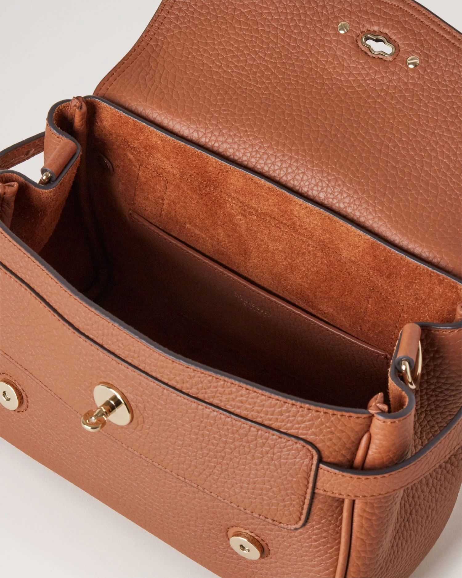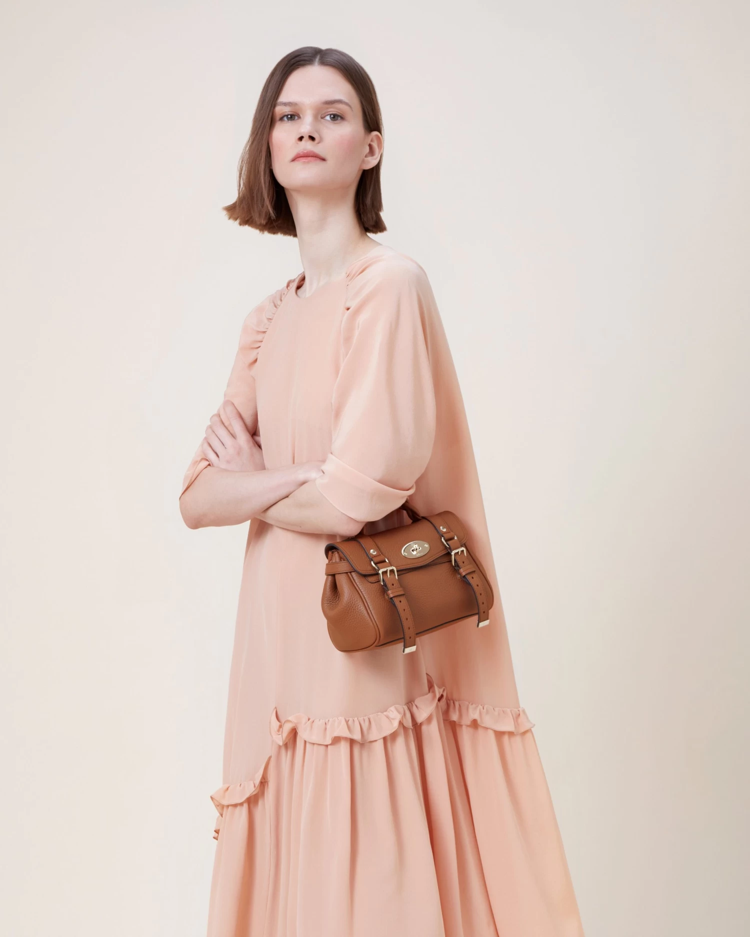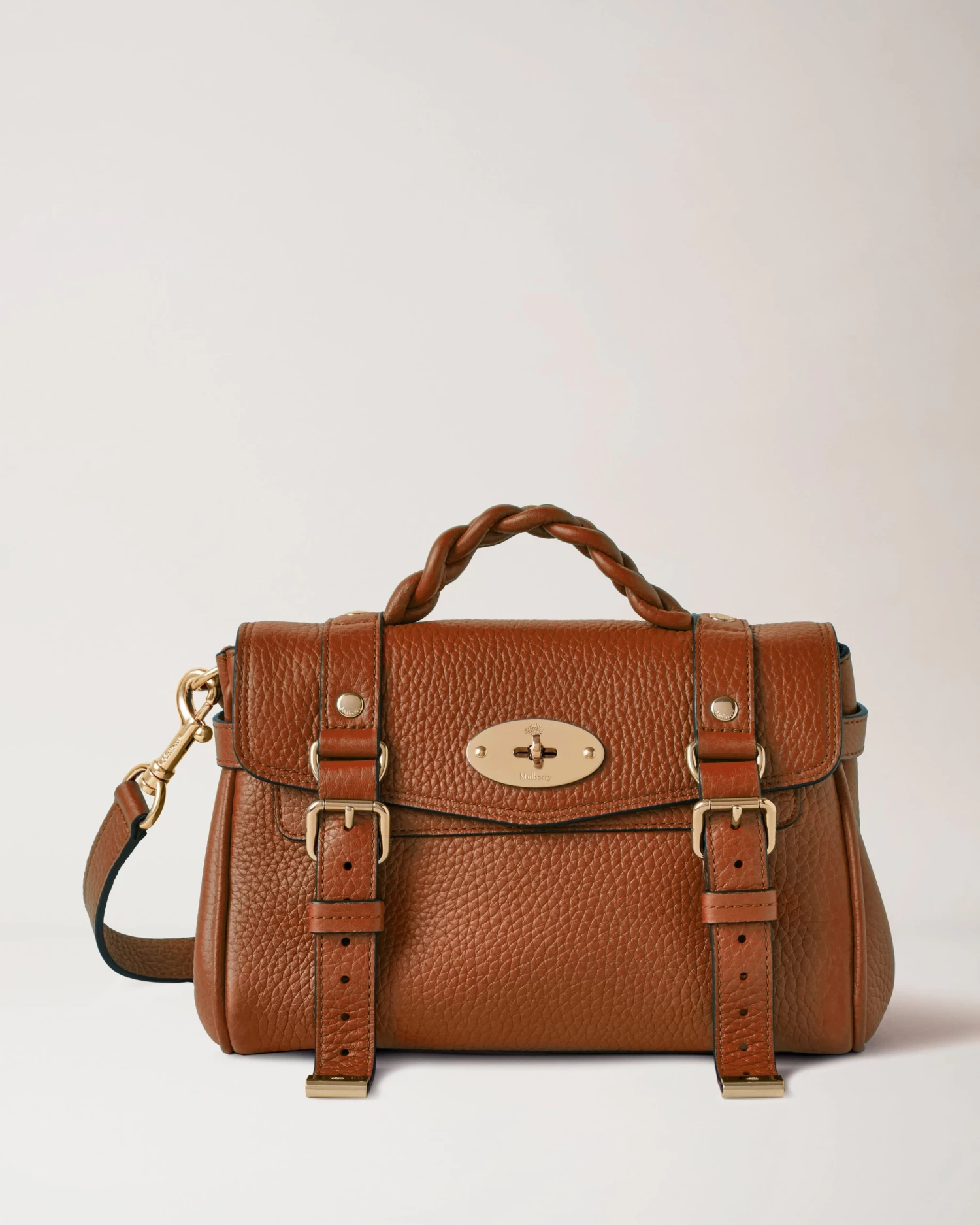 The Mini Alexa effortlessly combines elements from two iconic Mulberry styles: the Bayswater bag and the Elkington briefcase. The result is a miniature version of an understatedly cool satchel complete with the signature Mulberry Postman’s Lock and belt buckle and strap hardware. Carry by the plaited leather top handle or wear with the adjustable cross body strap.