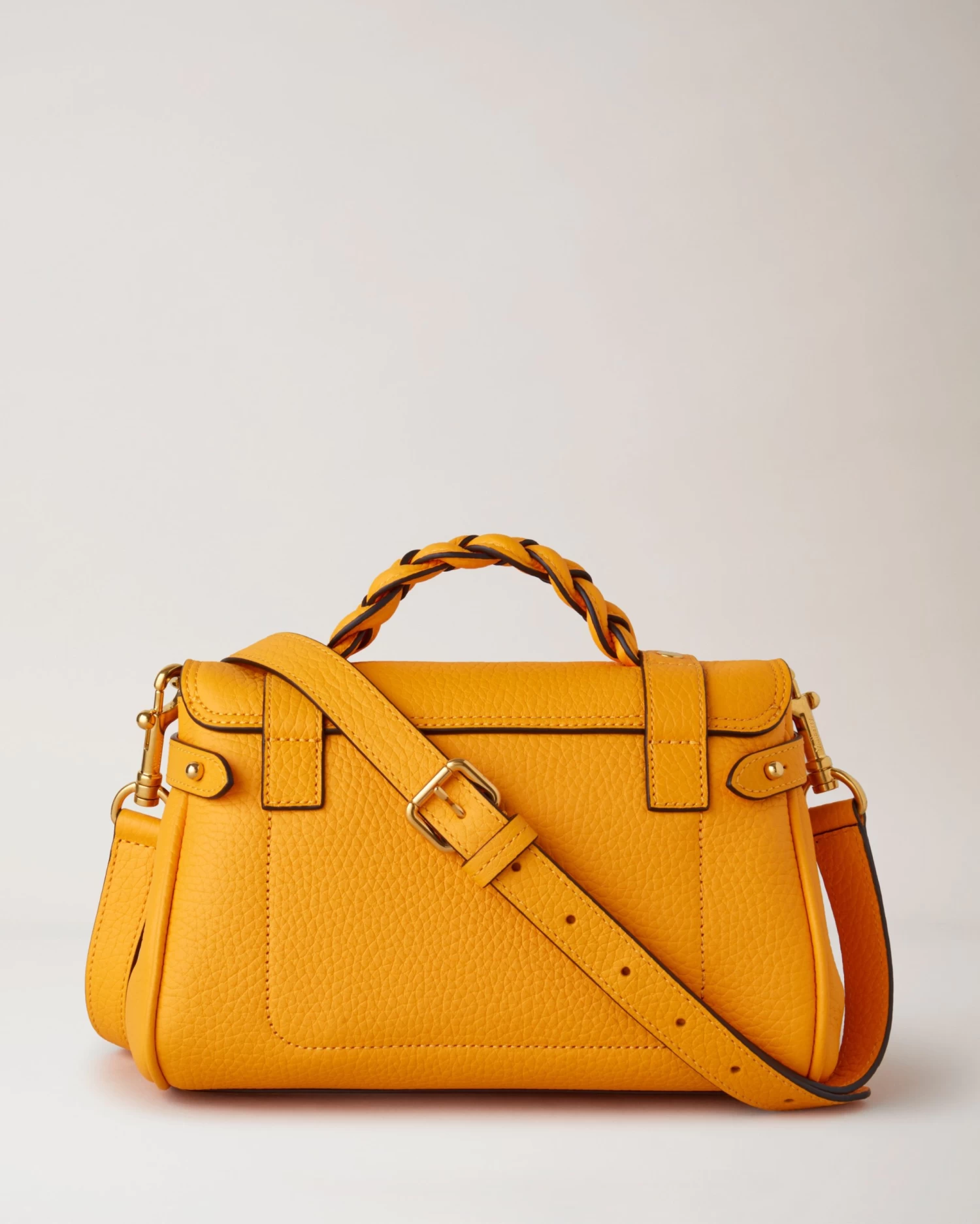 The Mini Alexa effortlessly combines elements from two iconic Mulberry styles: the Bayswater bag and the Elkington briefcase. The result is a miniature version of an understatedly cool satchel complete with the signature Mulberry Postman’s Lock and belt buckle and strap hardware. Carry by the plaited leather top handle or wear with the adjustable cross body strap.