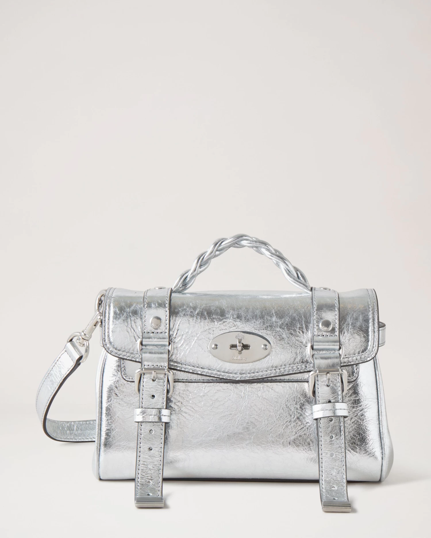The Mini Alexa effortlessly combines elements from two iconic Mulberry styles: the Bayswater bag and the Elkington briefcase. The result is a miniature version of an understatedly cool satchel complete with the signature Mulberry Postman’s Lock and belt buckle and strap hardware. Carry by the plaited leather top handle or wear with the adjustable cross body strap.