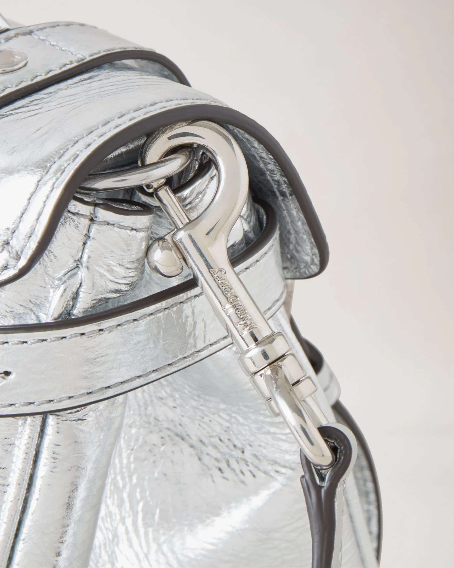 This product is made from a soft calf leather that has been laminated with a metallic foil finishing. The leather has been drummed to give a crinkled affect.