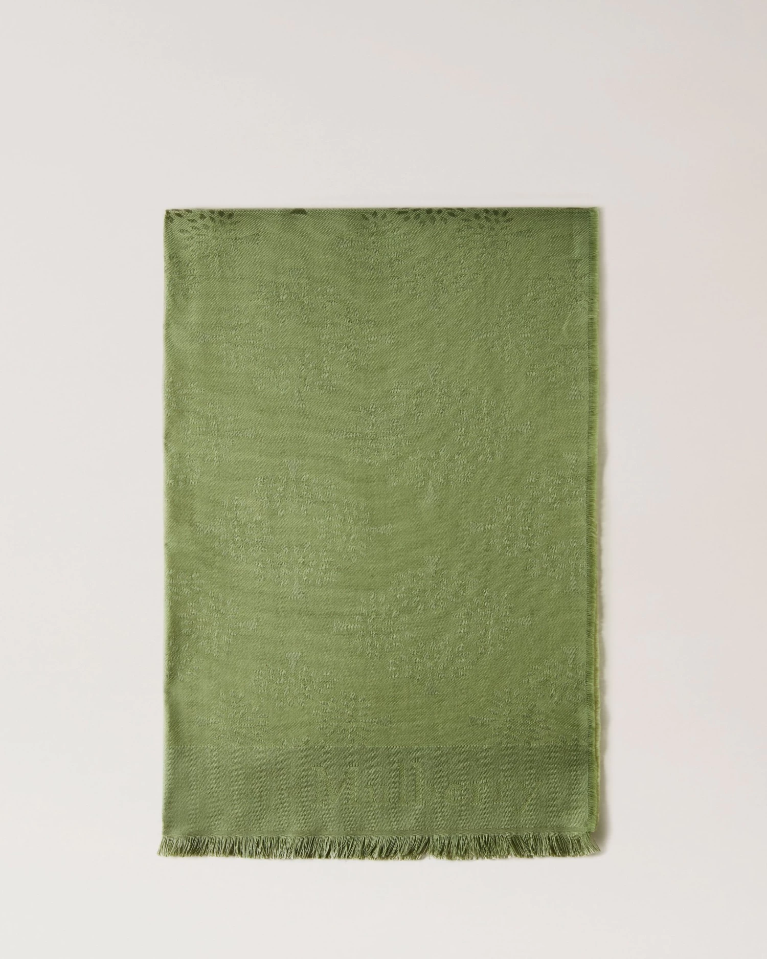 - A rectangular scarf featuring the signature Mulberry tree signature