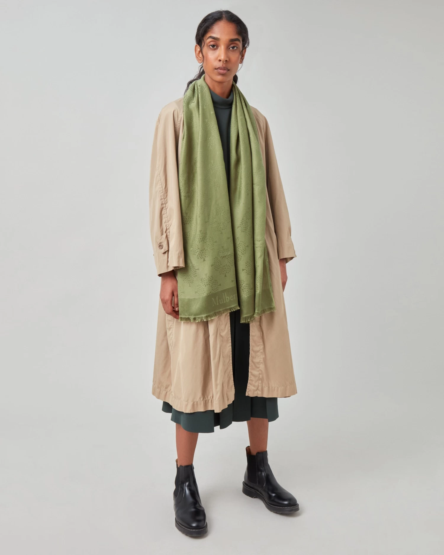 A lightweight scarf in a blend of silk and cotton, featuring our signature Mulberry Tree.