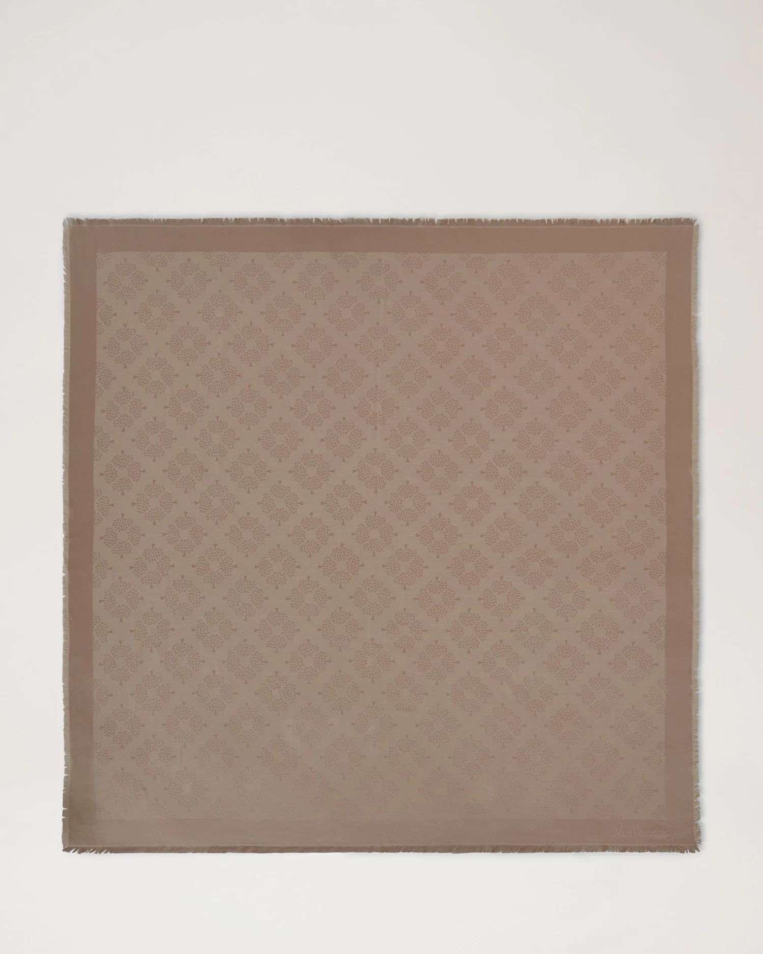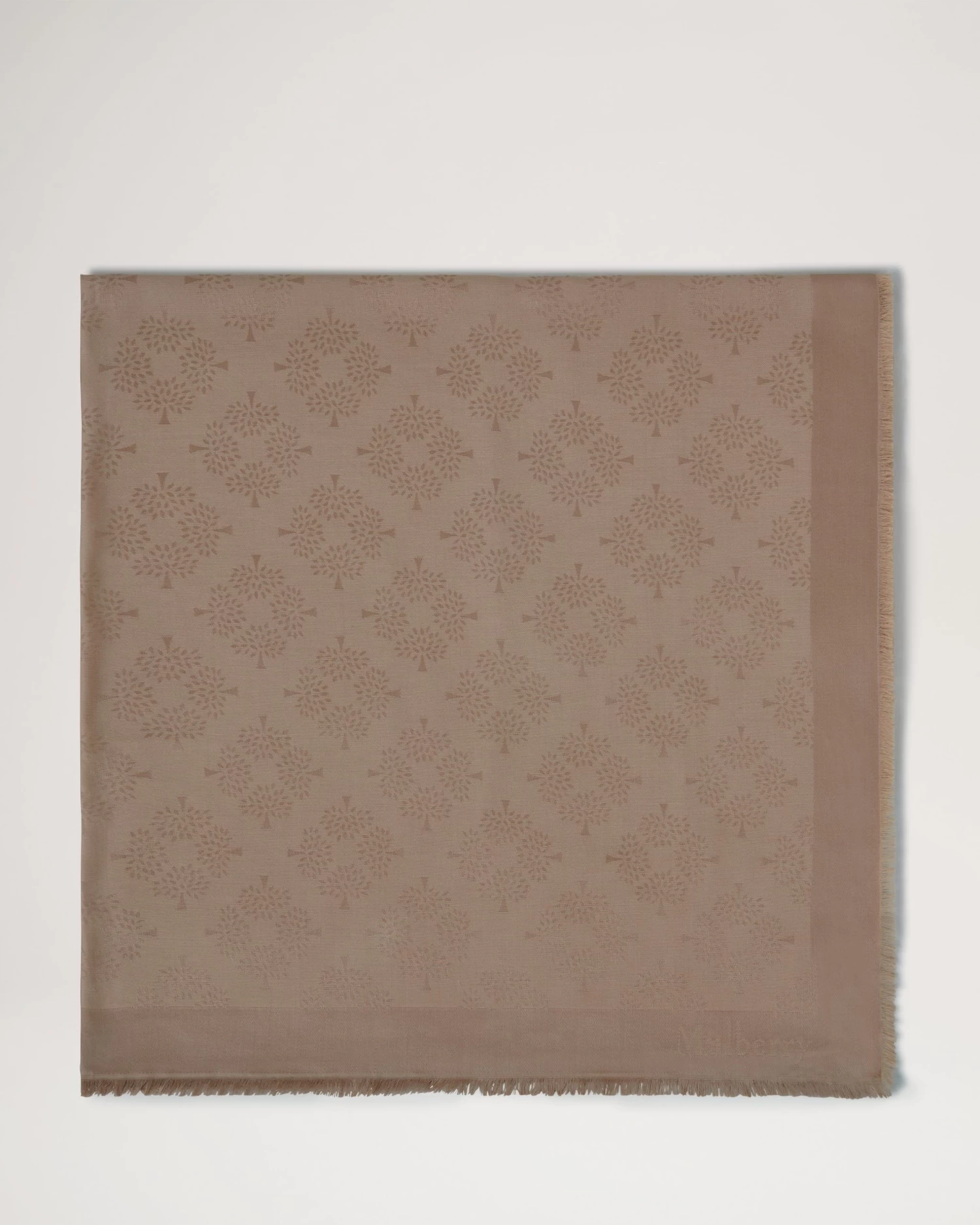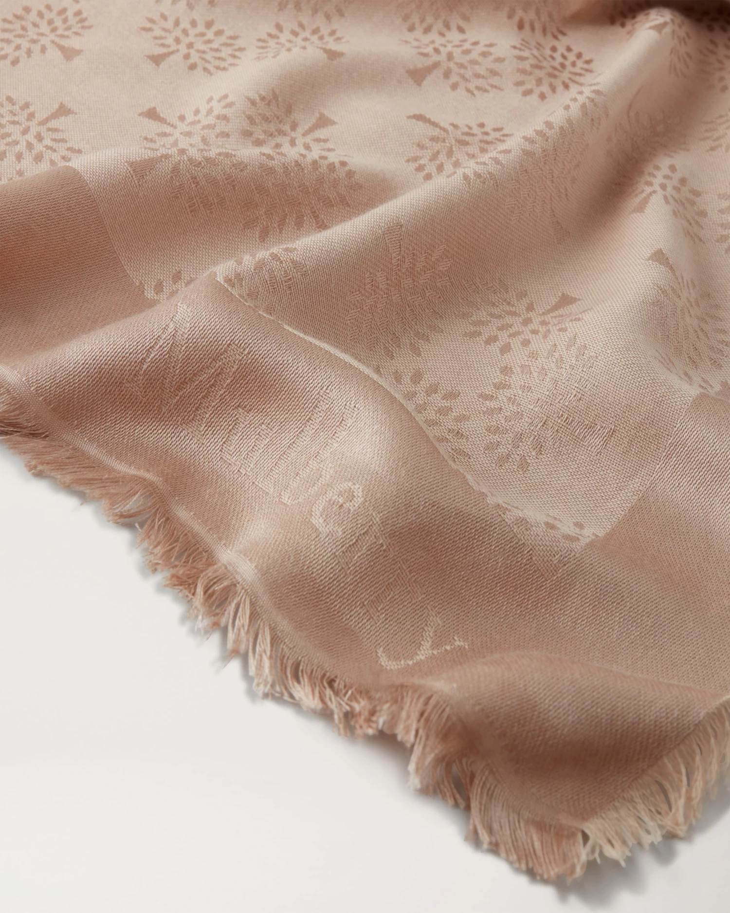 A large, lightweight silk cotton blend scarf, with Mulberry tree detailing. Can be worn wrapped around the neck, or draped loosely over the shoulders.