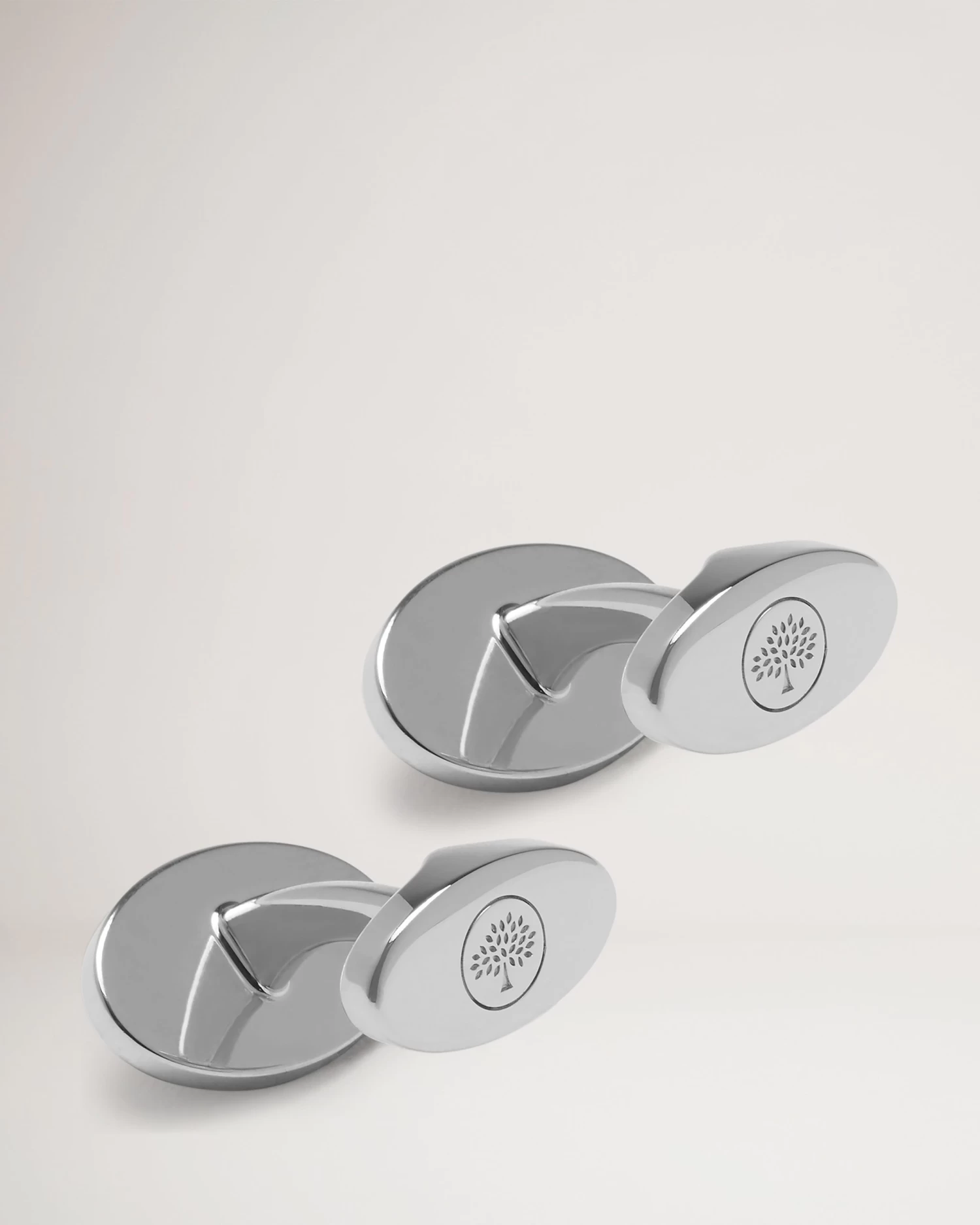 Mulberry cufflinks in an oval plaque shape featuring Mulberry logo embossing, a curved T-bar design and swivel-back fastening.