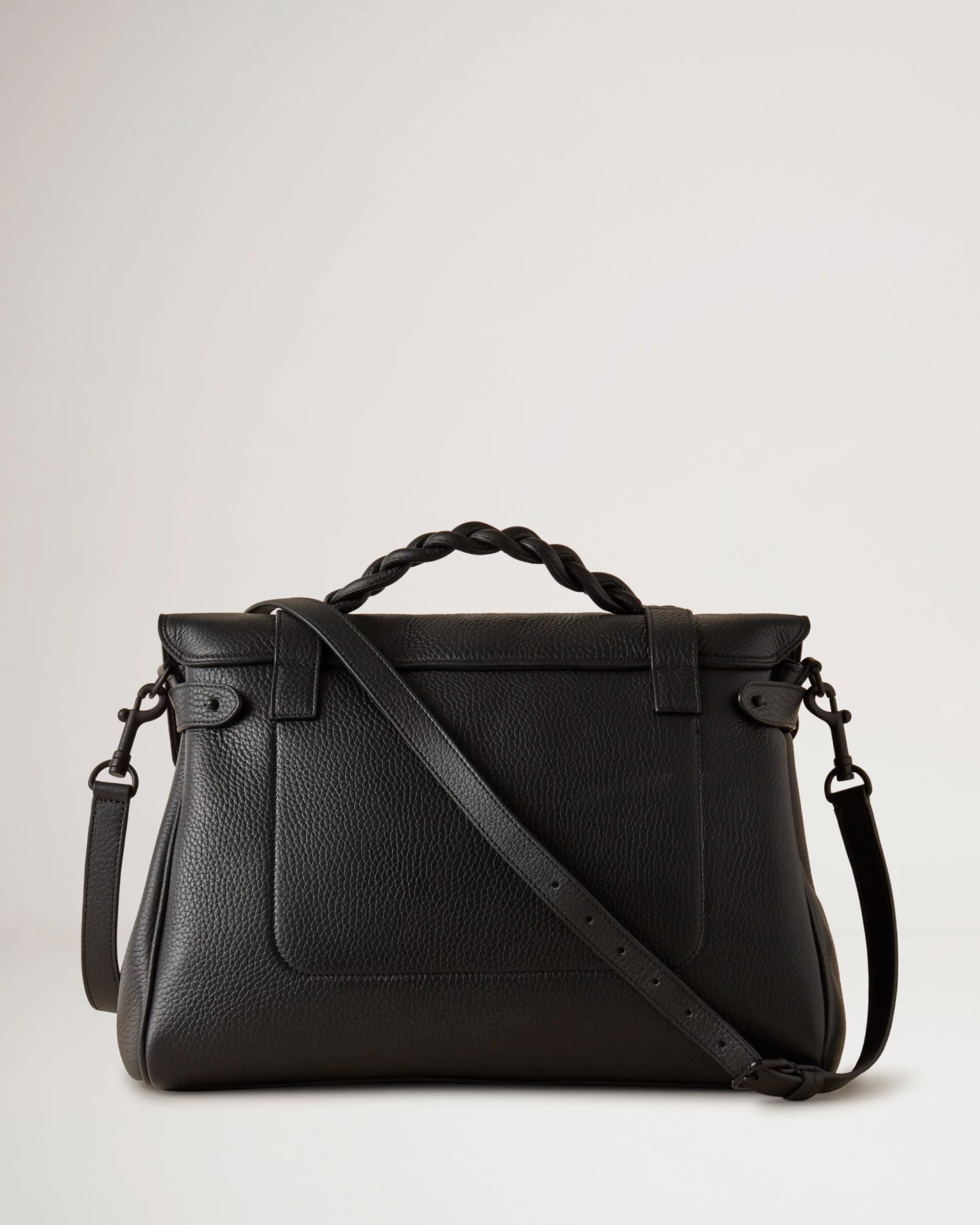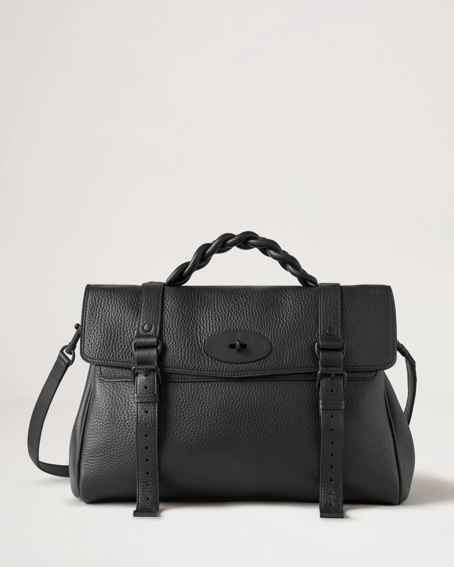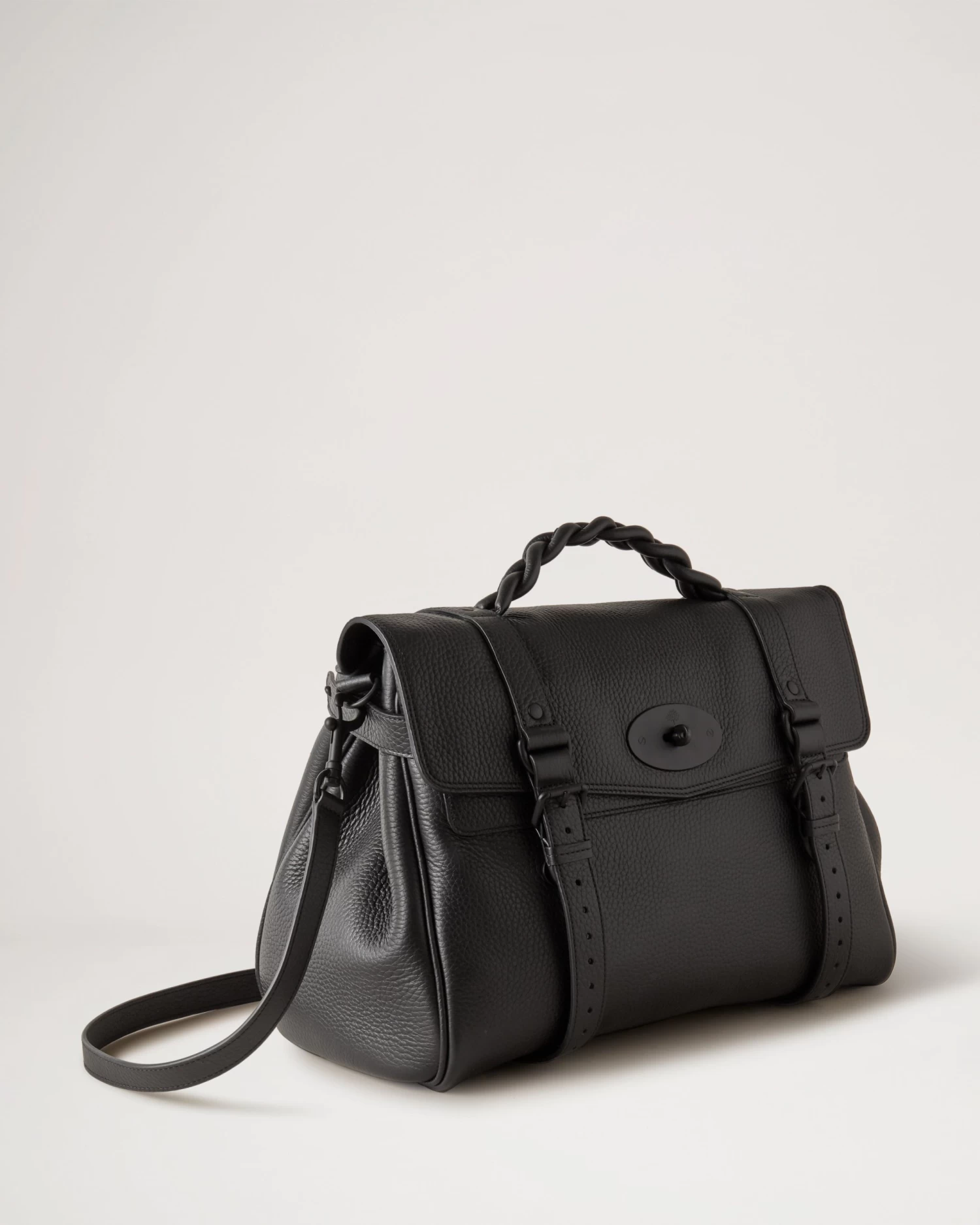 The Oversized Alexa effortlessly combines elements from two iconic Mulberry styles: the Bayswater bag and the Elkington briefcase. The result is a oversized version of an understatedly cool satchel complete with the signature Mulberry Postman’s Lock and belt buckle and strap hardware. Carry by the plaited leather top handle or wear with the adjustable cross body strap.