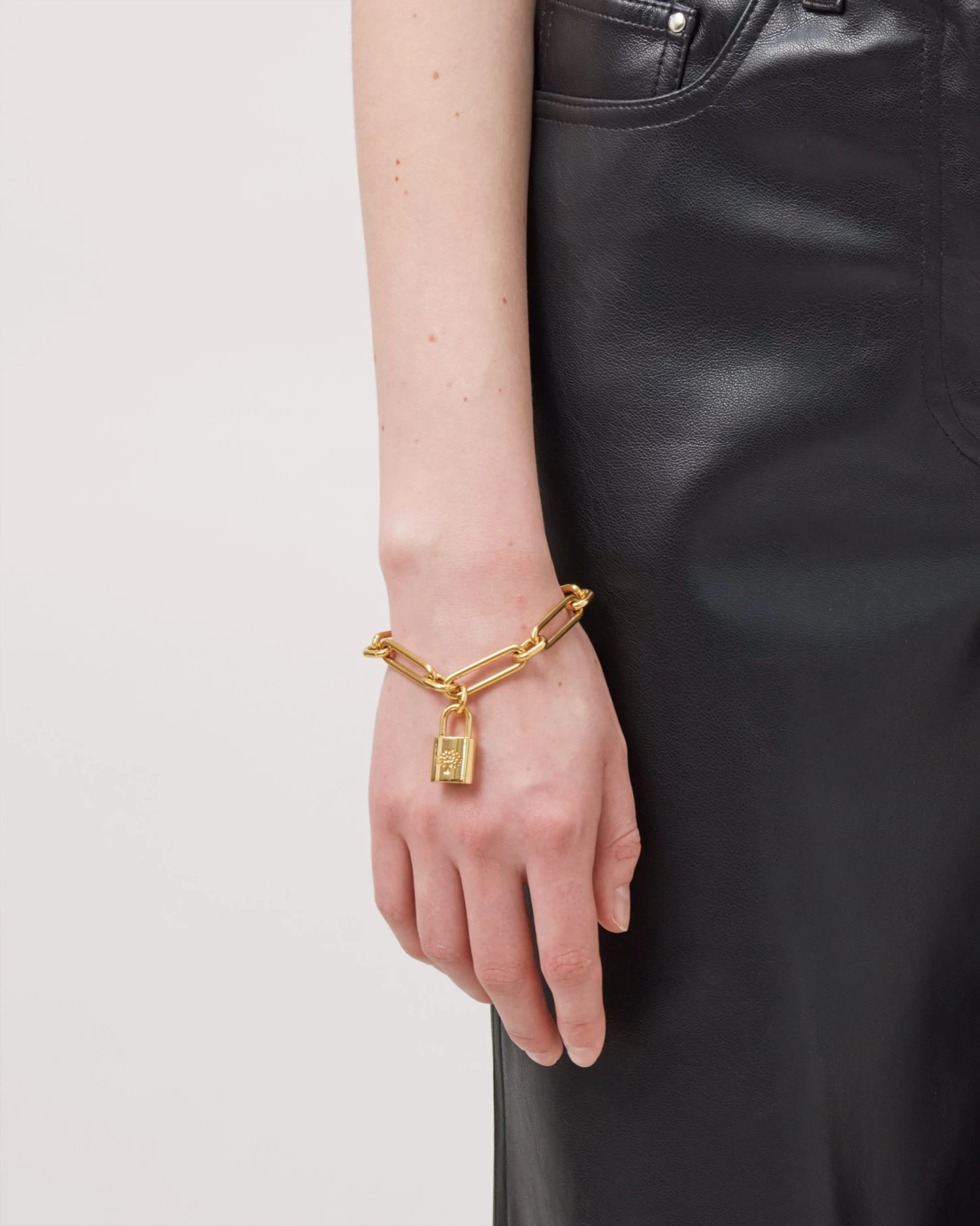 - Edgy Padlock Bracelet features the Mulberry Padlock in gold hardware finish