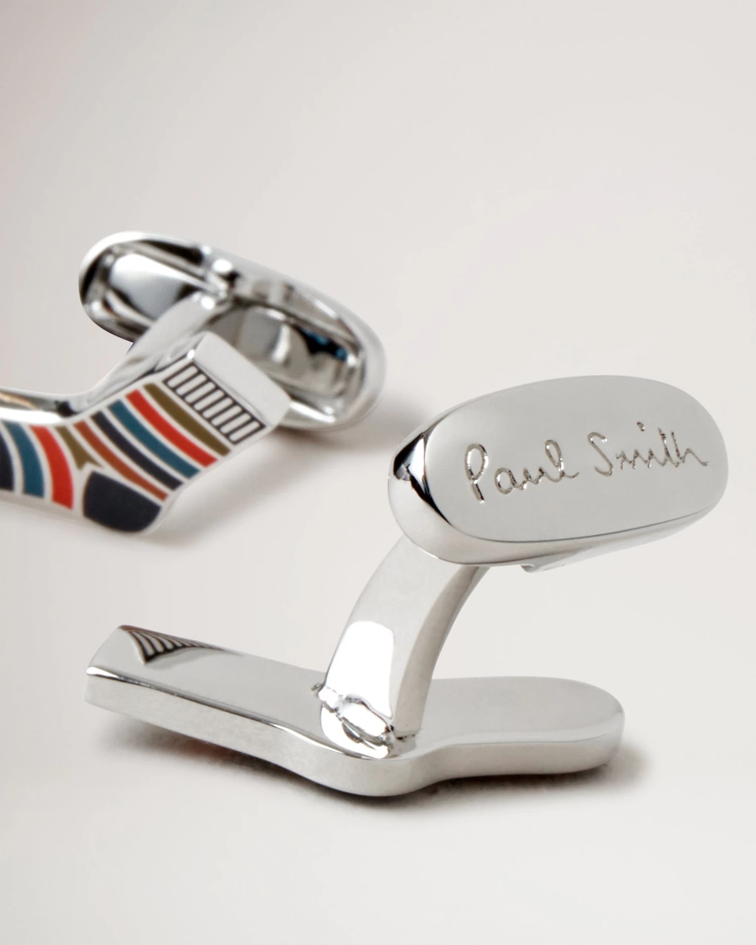 - These silver cufflinks feature our ‘Artist Stripe’ pattern on a pair of socks