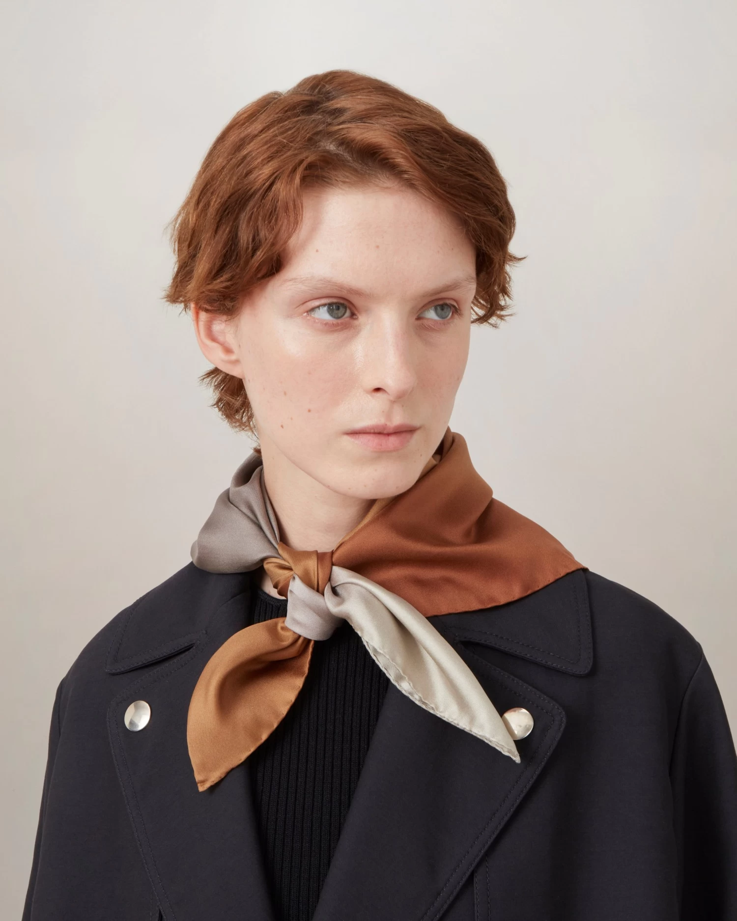 A 100% Silk Twill scarf that doubles as the perfect accessory.