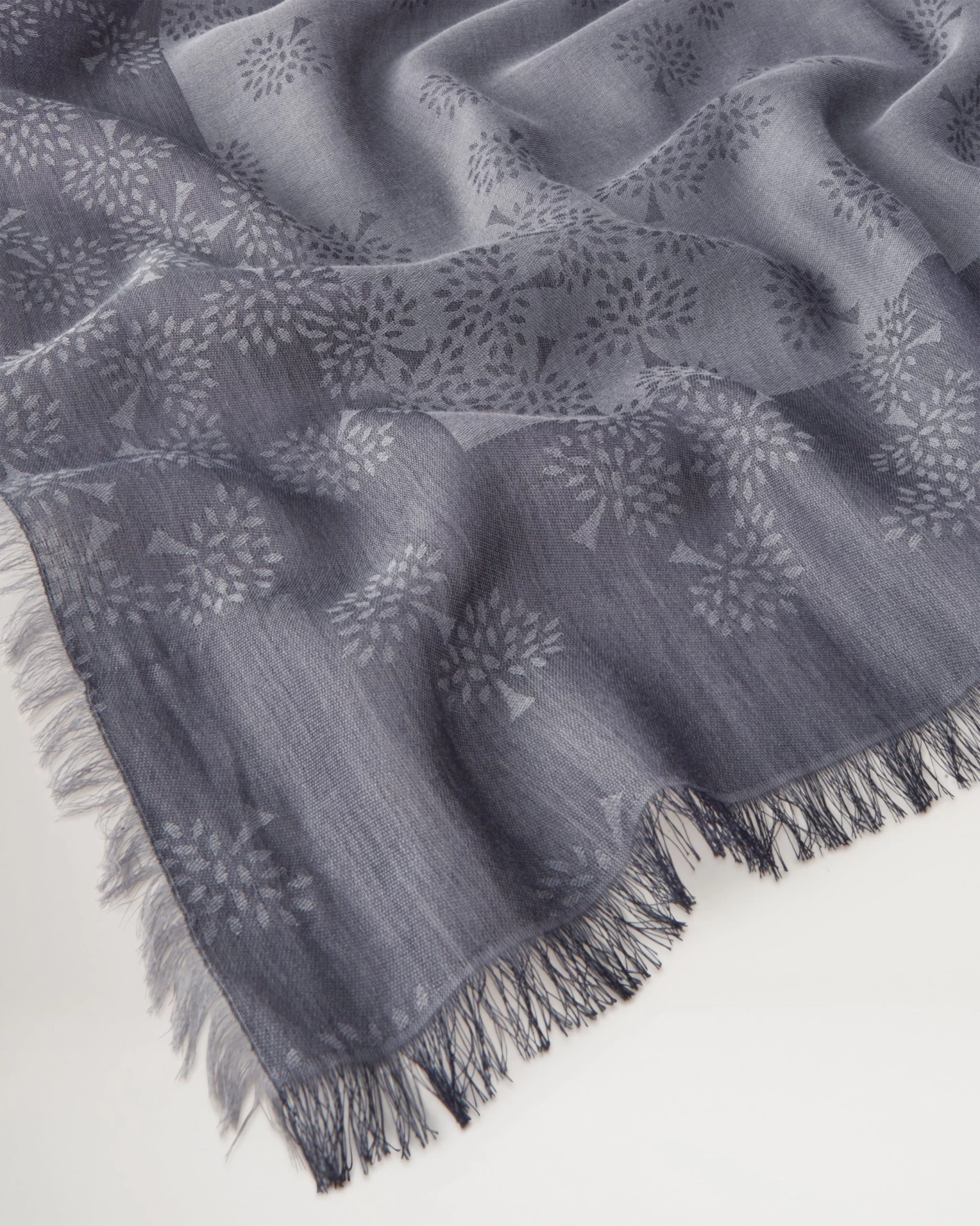 A sumptuous scarf with signature all-over Mulberry tree motif.