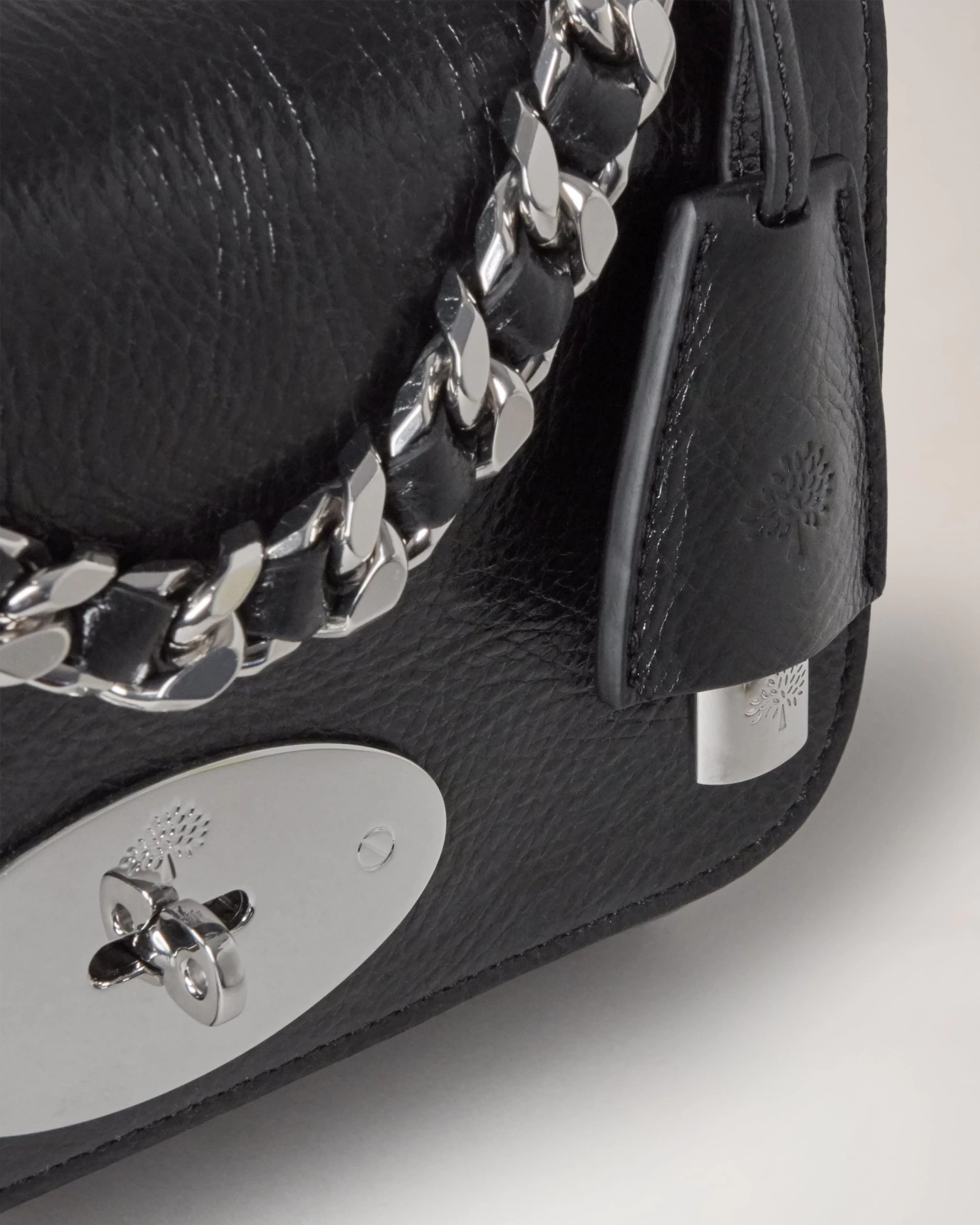 The Top Handle Lily offers an updated version of the effortlessly elegant Lily bag with the same versatile size and compact shape. It has a long woven leather and chain strap and a shorter leather and chain top handle. The timeless shape is finished with signature Mulberry details such as the Postman’s Lock and leather padlock fob.
