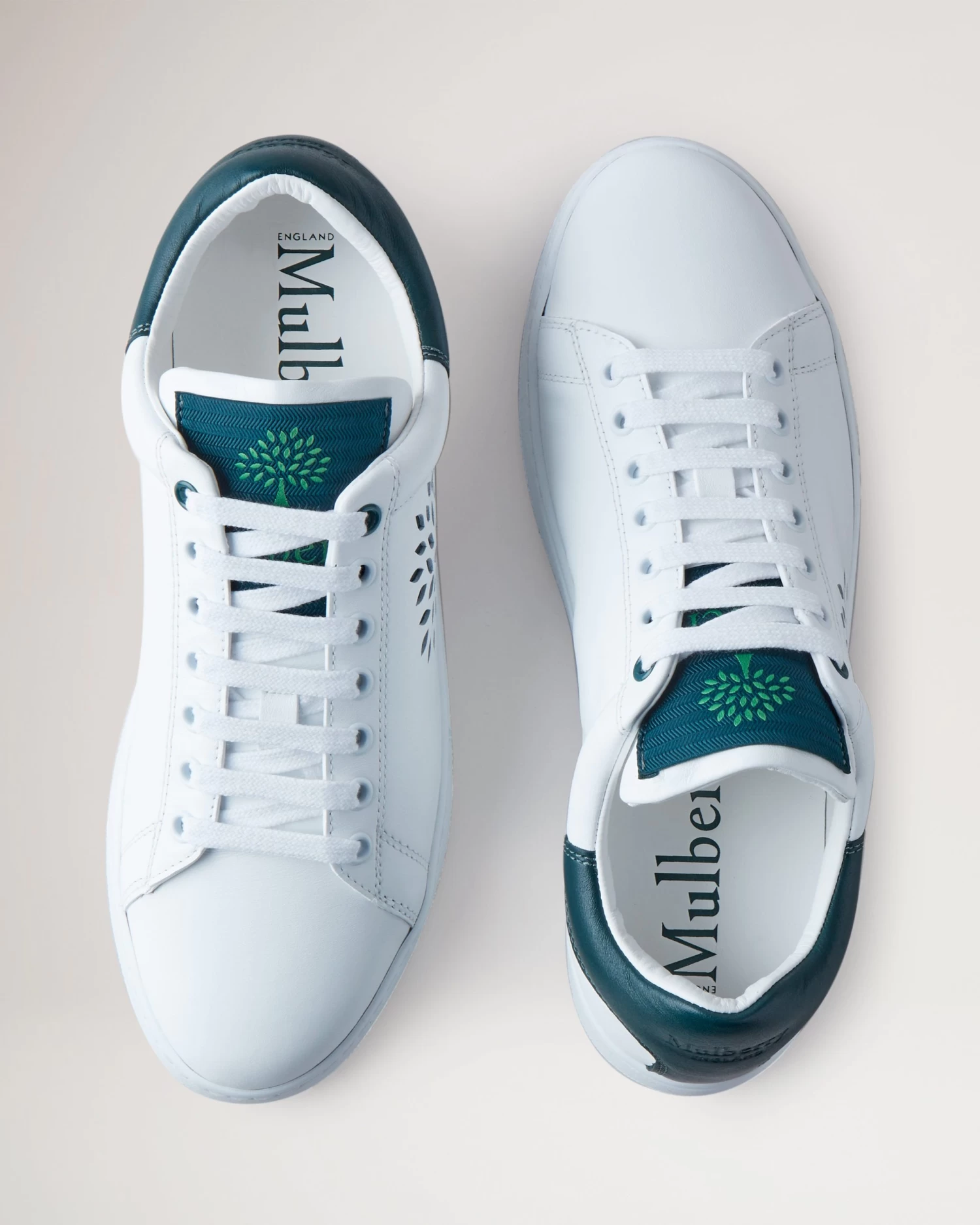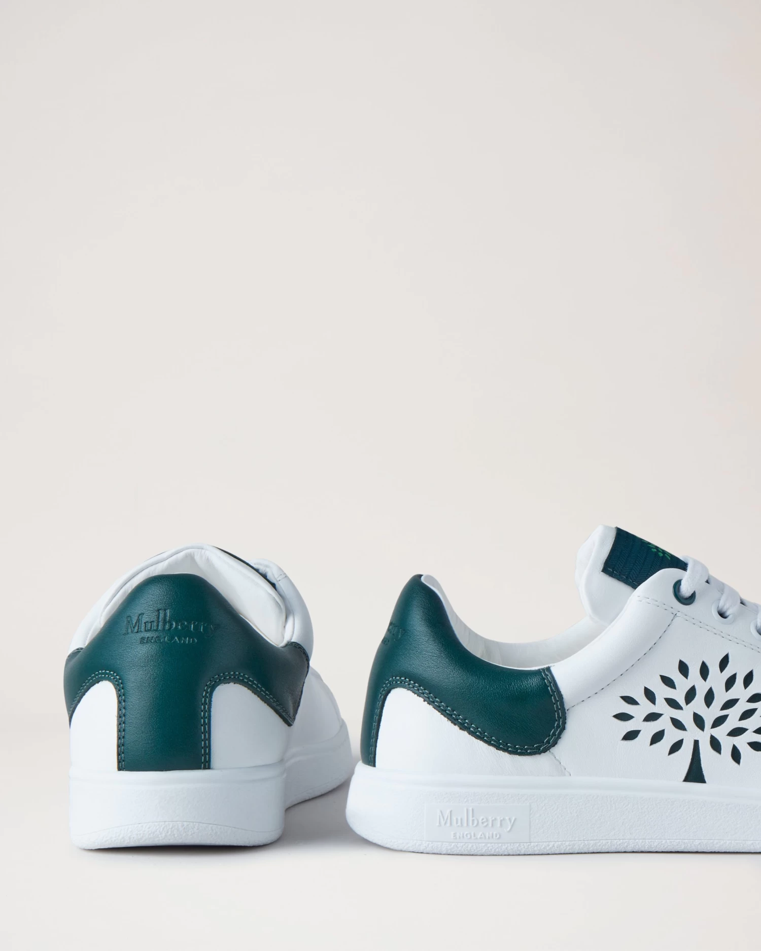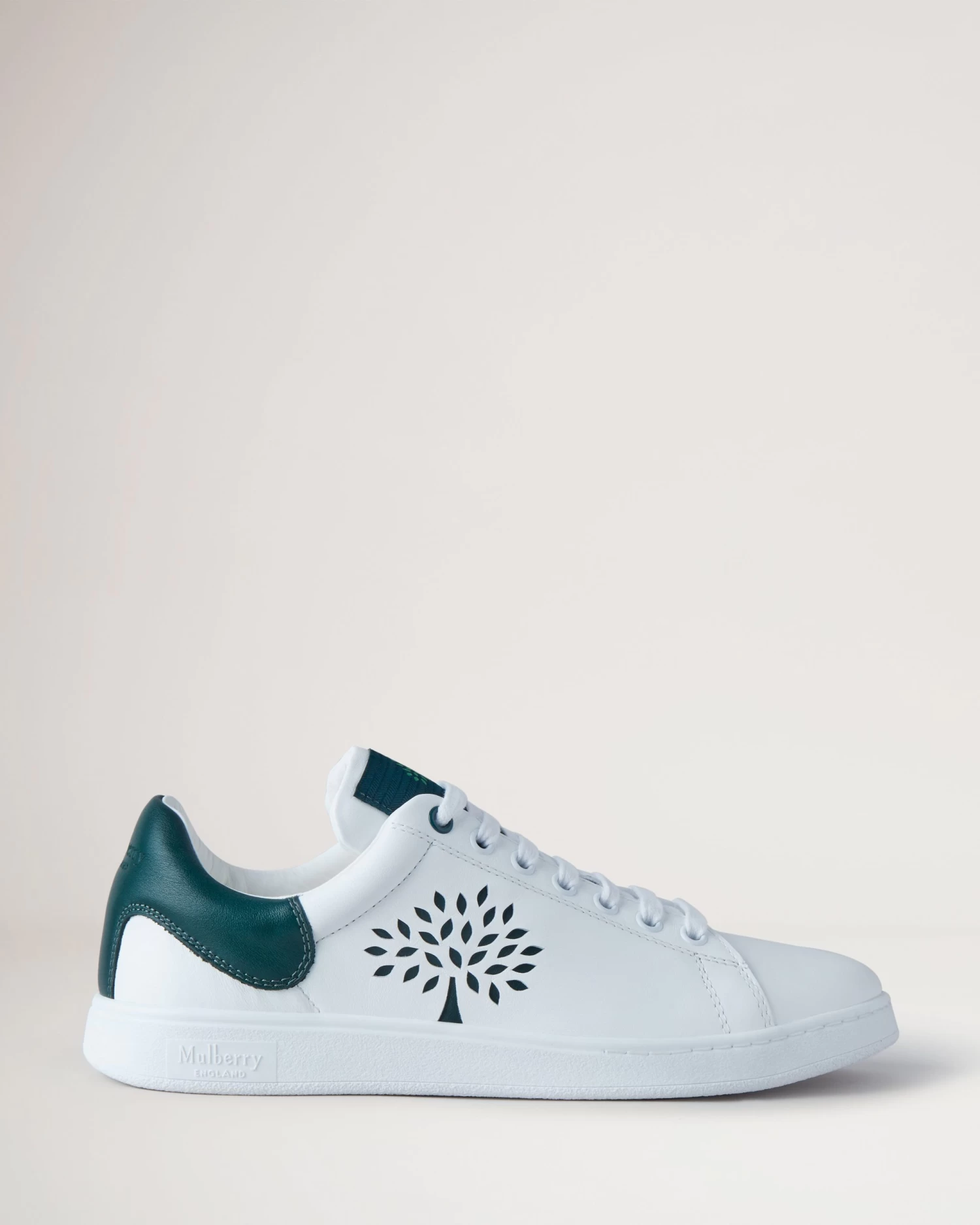 A timeless style, the Tree Tennis Trainer boasts a sleek calf leather construction and wide, low rubber sole, decorated with eye-catching coloured back and topped off with striking perforated Mulberry Tree detail.