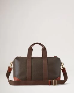 Classic holdall shape with leather top handles and a removable shoulder strap.